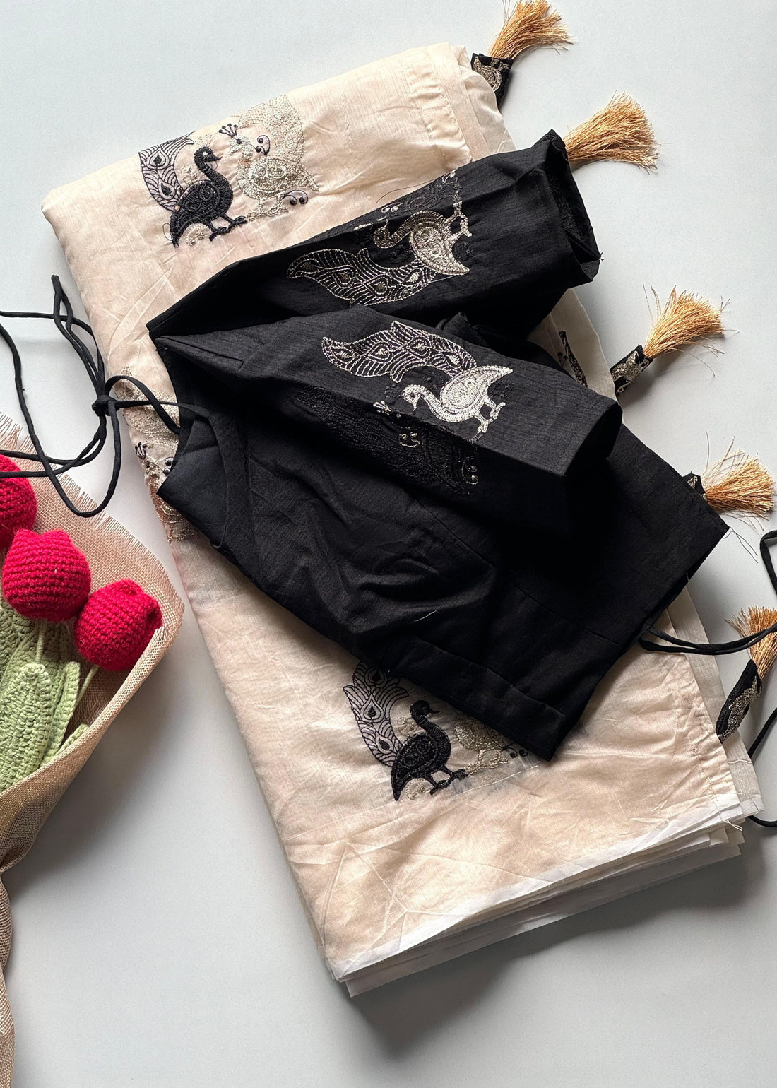 Pure Soft Organza Saree with Black Scalloping & Cutwork S2349