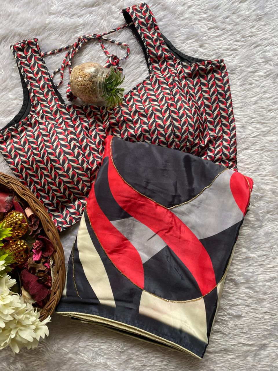 Elegant Chinnon Silk Saree with Digital Print & Blouse S2351