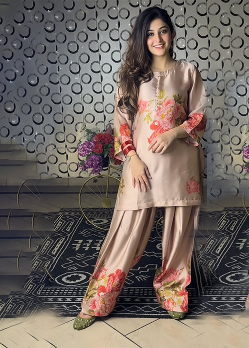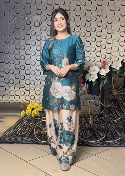 Chic Floral Printed Satin Co-ord Set for Parties & Casual Wear D6314