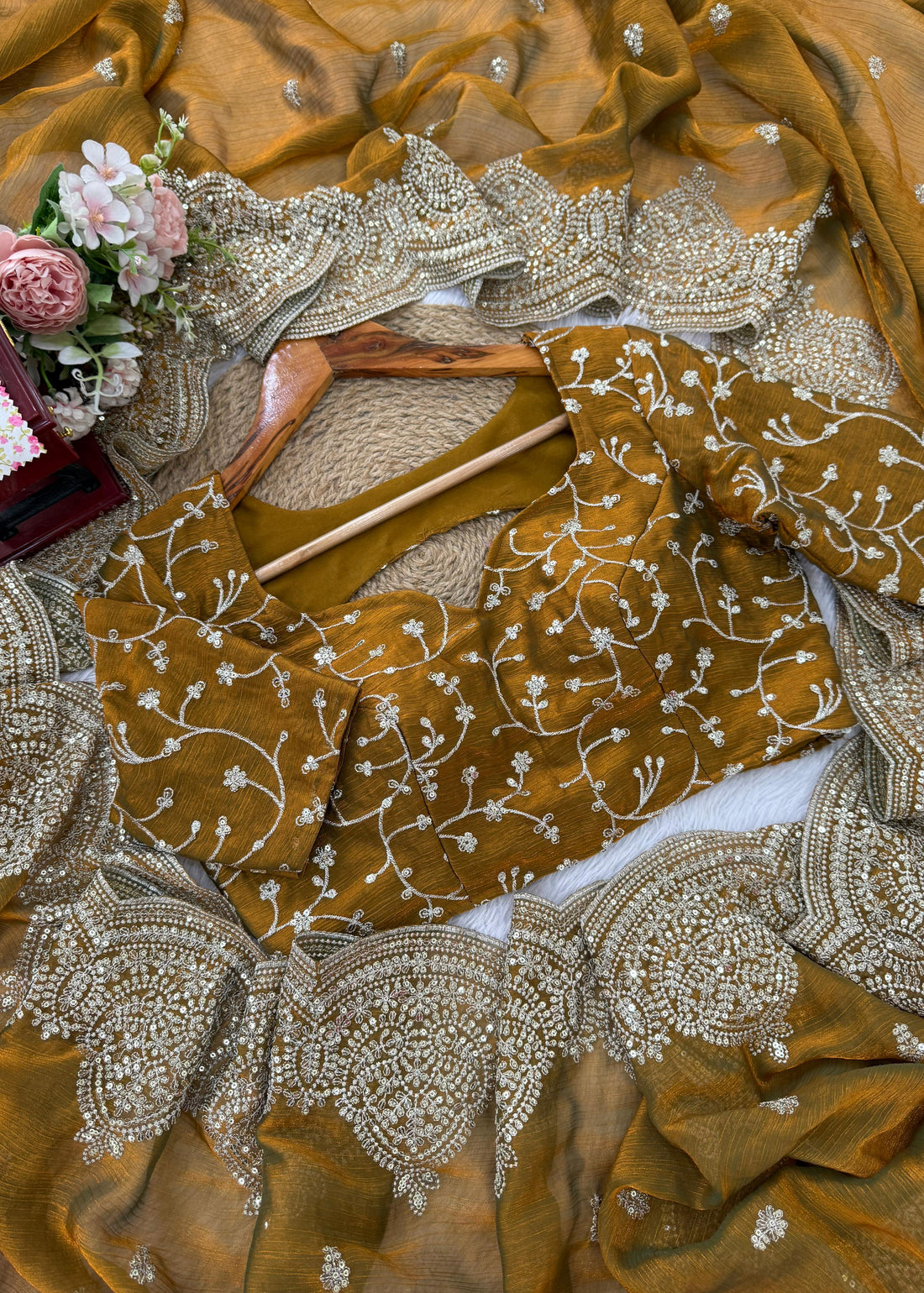 Fendi Chiffon Saree with Thread & Sequins Embroidery S2519