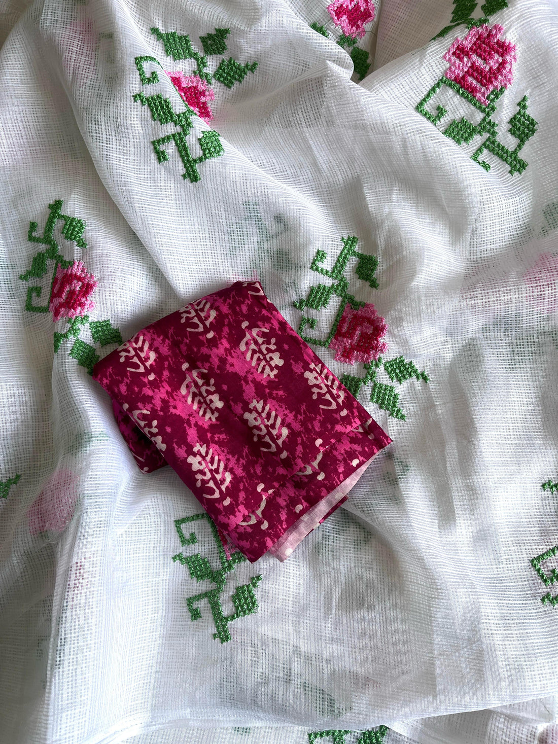 Pure Kota Doriya Cross-Stitch Thread Saree with Printed Blouse VT-KOTA-FLOWER