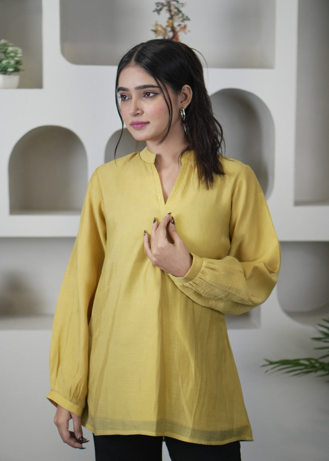 Stylish Yellow Mul Chanderi Long Sleeve Top for Women D6277