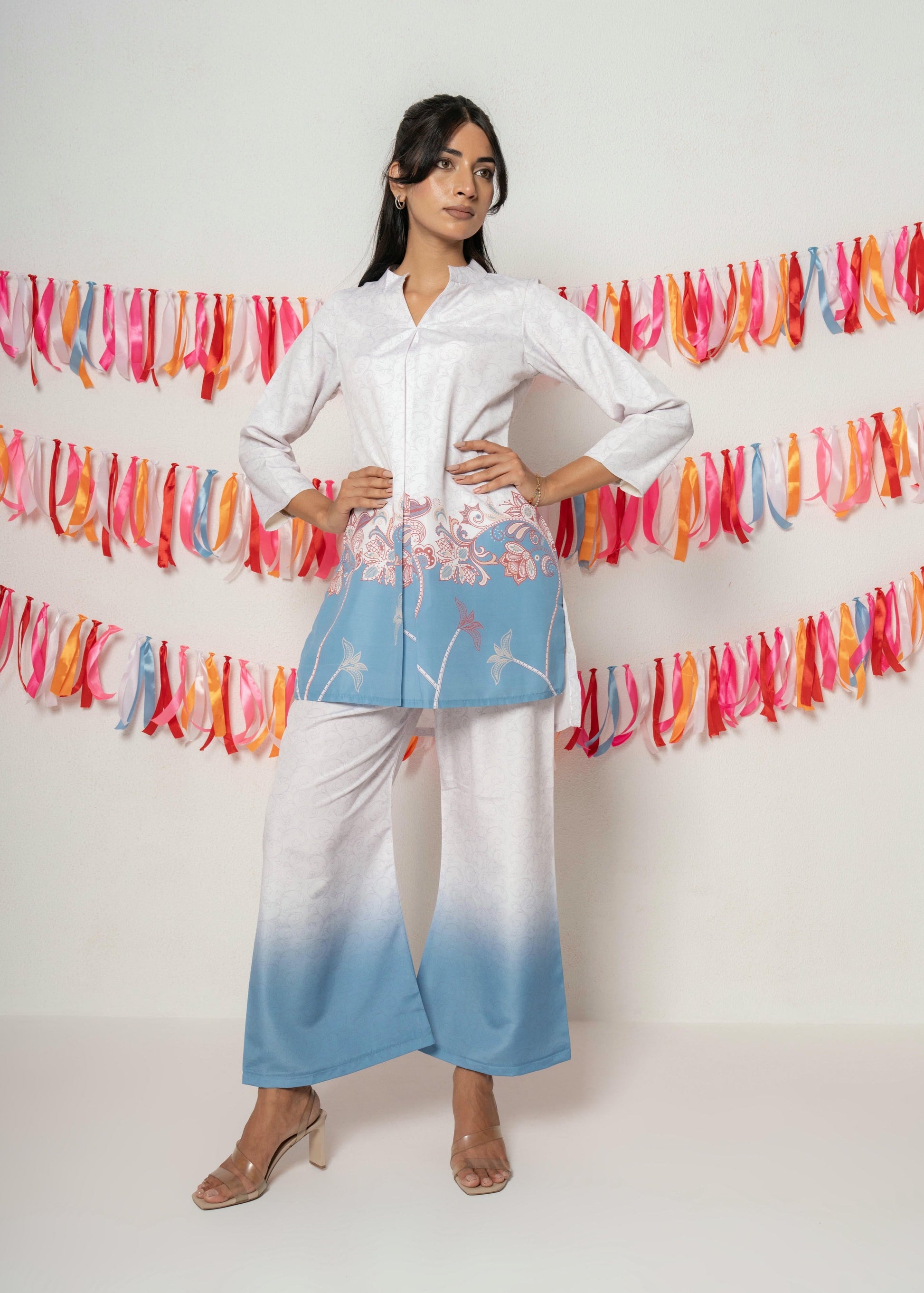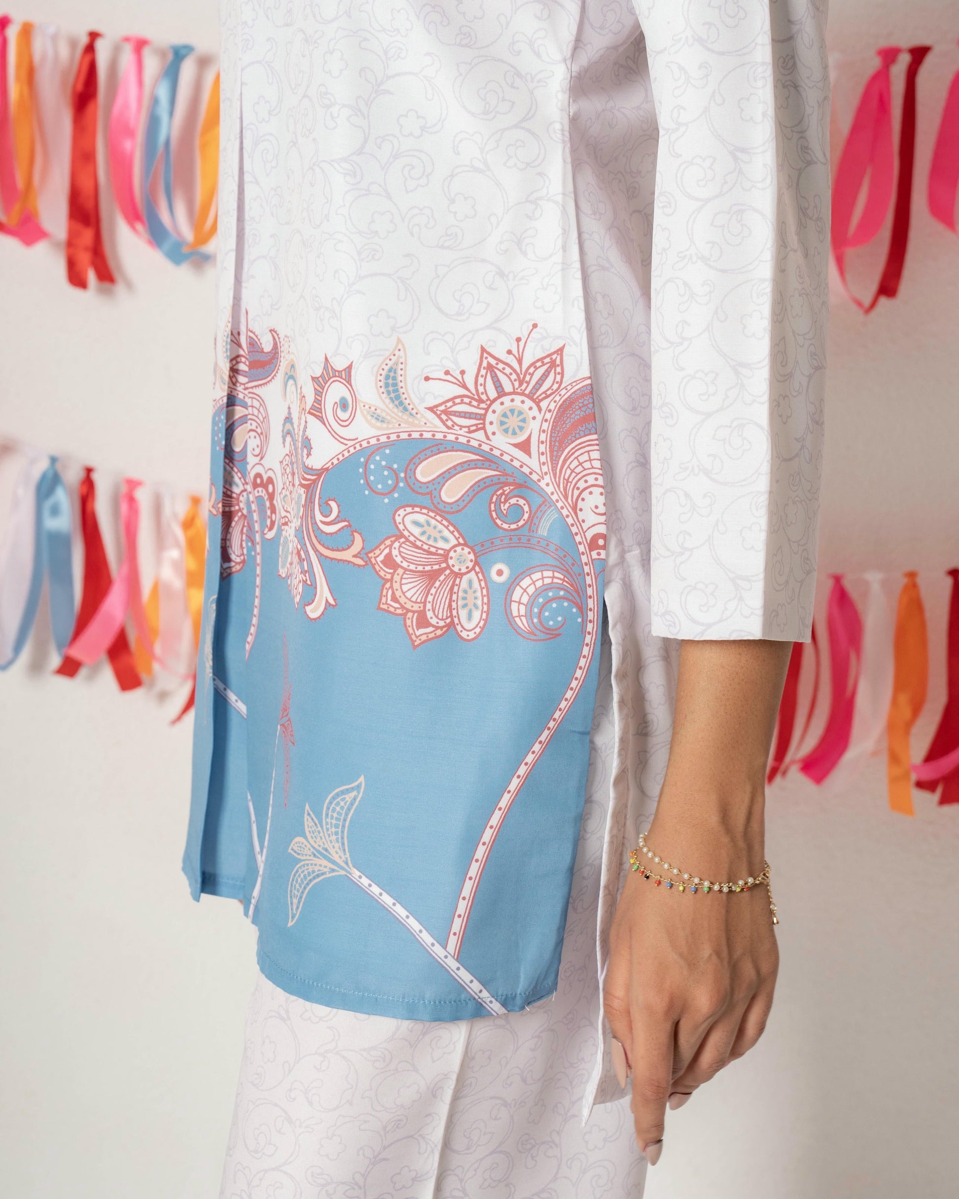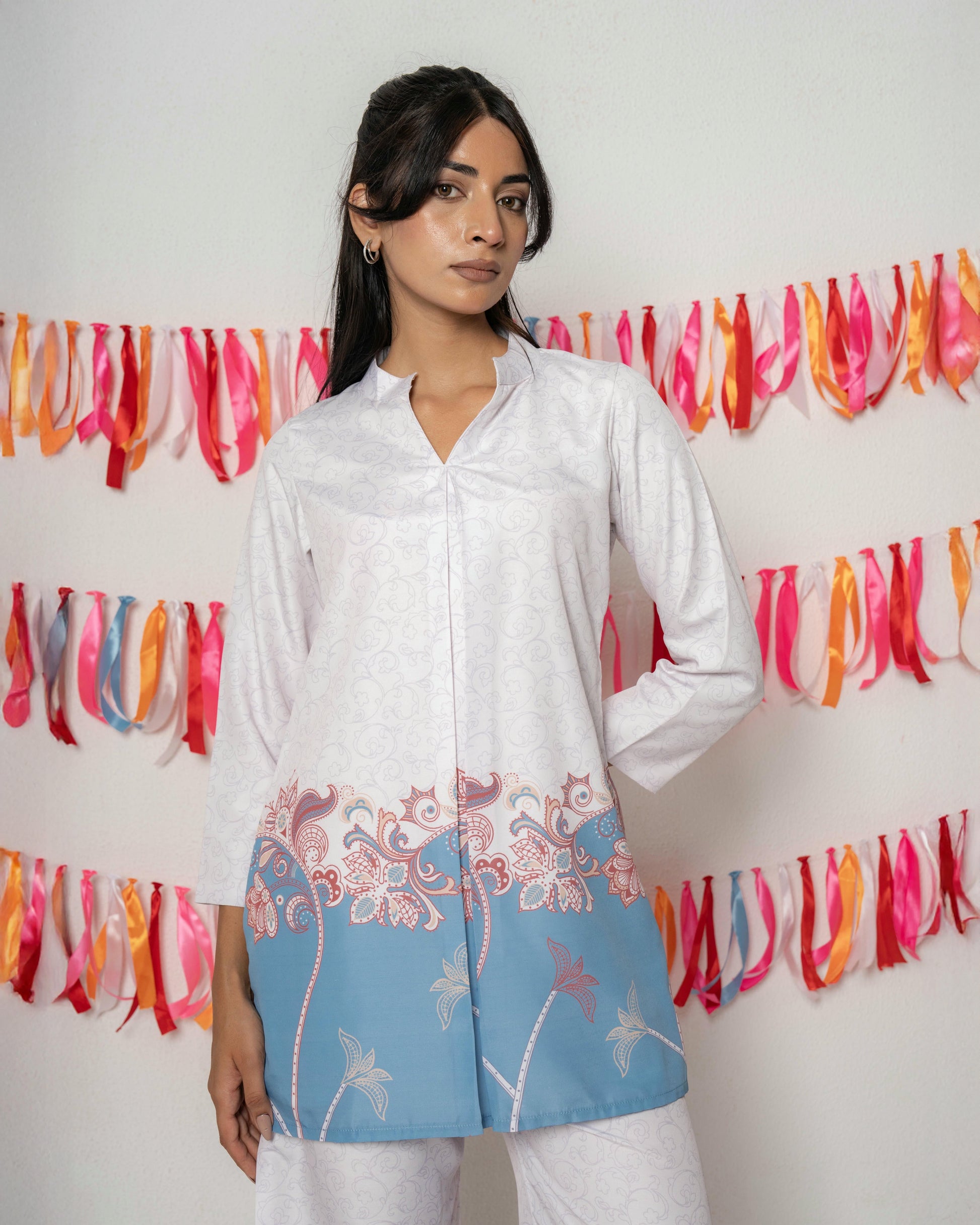 Elevate your everyday style with this elegant kurti made from premium Raymond Cotton. Designed for comfort and sophistication, this soft pink outfit features intricate floral prints in rich maroon and plum tones, beautifully balanced with a contrast hem and sleeve cuffs. The breathable Raymond Cotton fabric ensures a crisp, refined look while keeping you comfortable all day long — perfect for both casual and semi-formal wear.