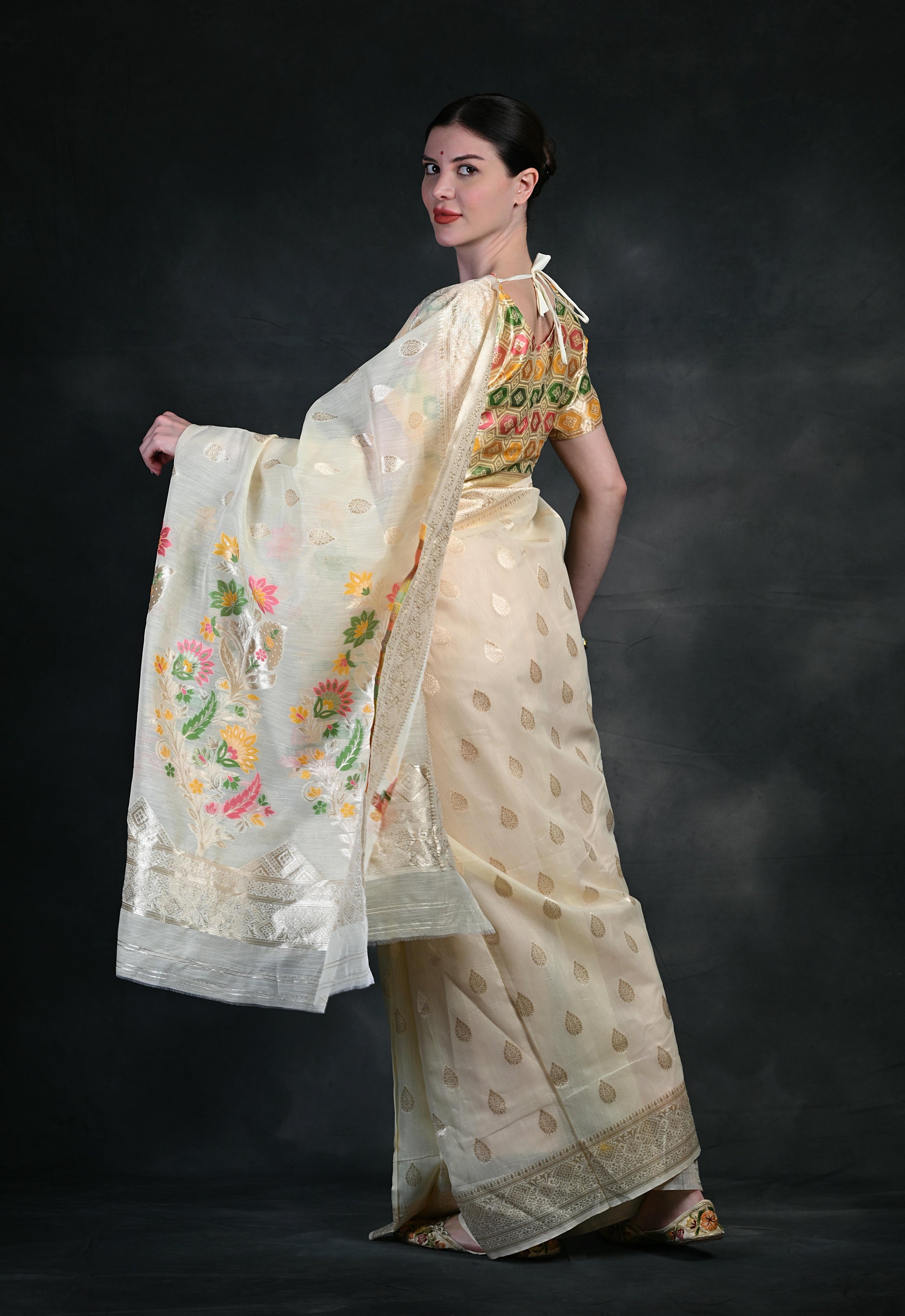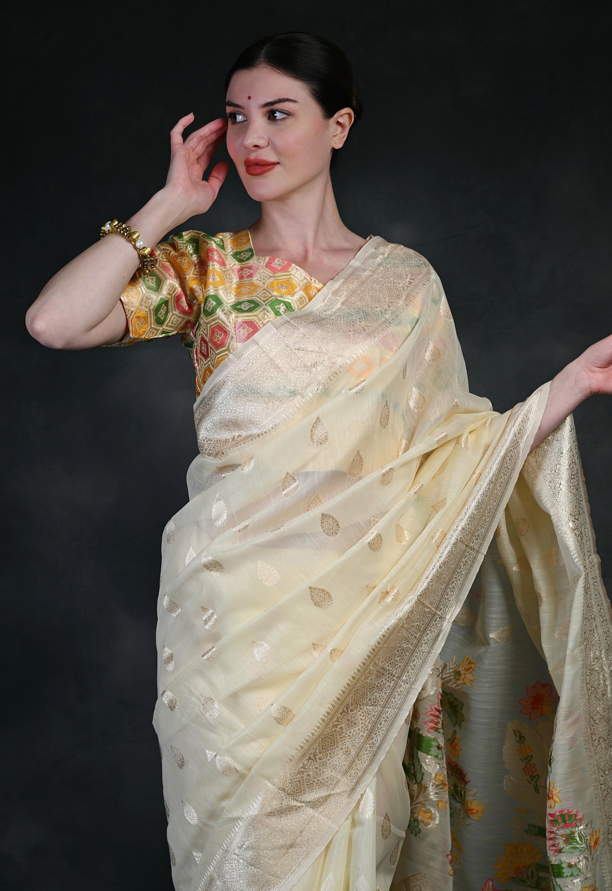 Ready to ship, this saree is the epitome of traditional craftsmanship and modern elegance, perfect for any celebratory occasion.