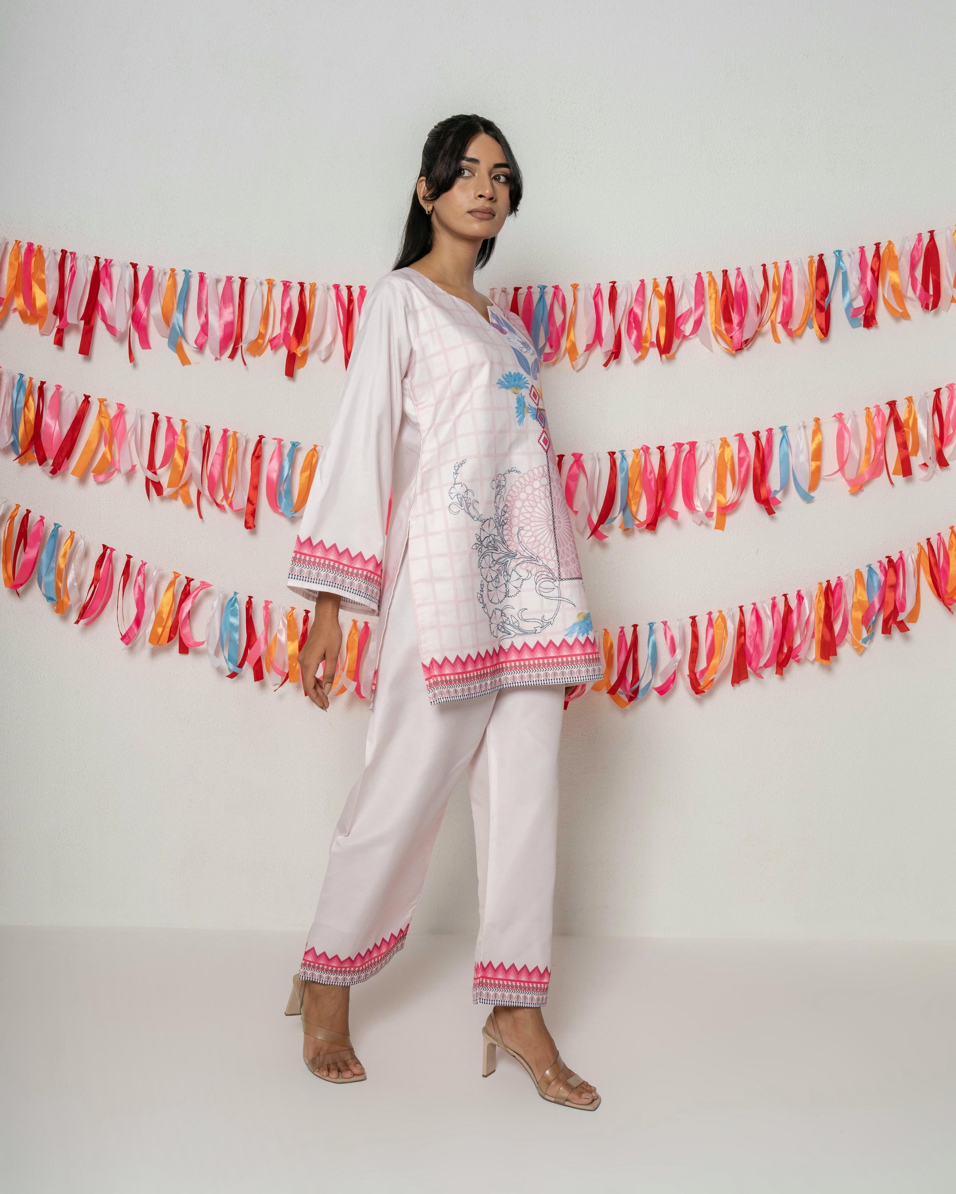 Elevate your everyday style with this elegant kurti made from premium Raymond Cotton. Designed for comfort and sophistication, this soft pink outfit features intricate floral prints in rich maroon and plum tones, beautifully balanced with a contrast hem and sleeve cuffs. The breathable Raymond Cotton fabric ensures a crisp, refined look while keeping you comfortable all day long — perfect for both casual and semi-formal wear.