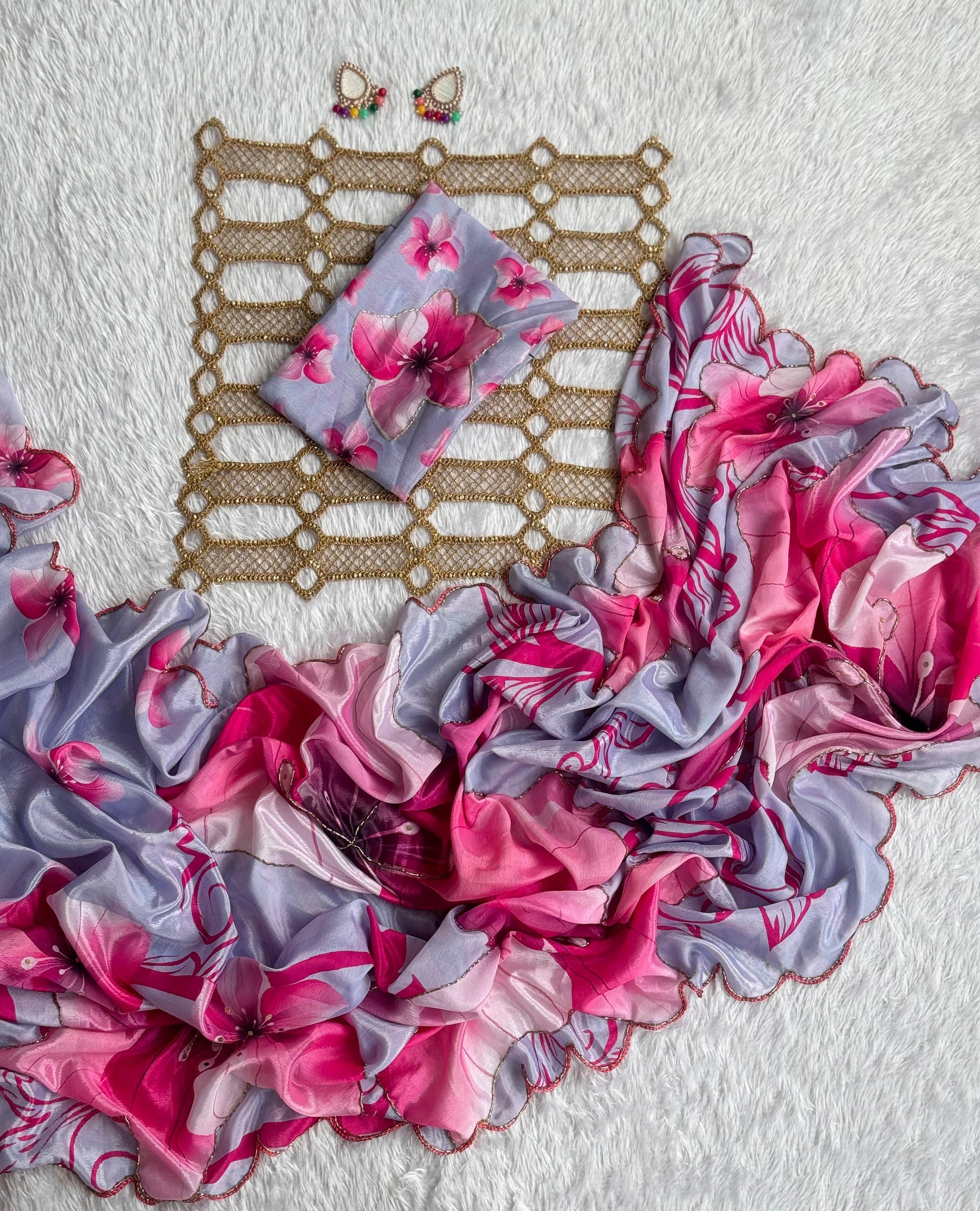 Elegant Chinnon Silk Saree with Digital Print & Blouse S2351
