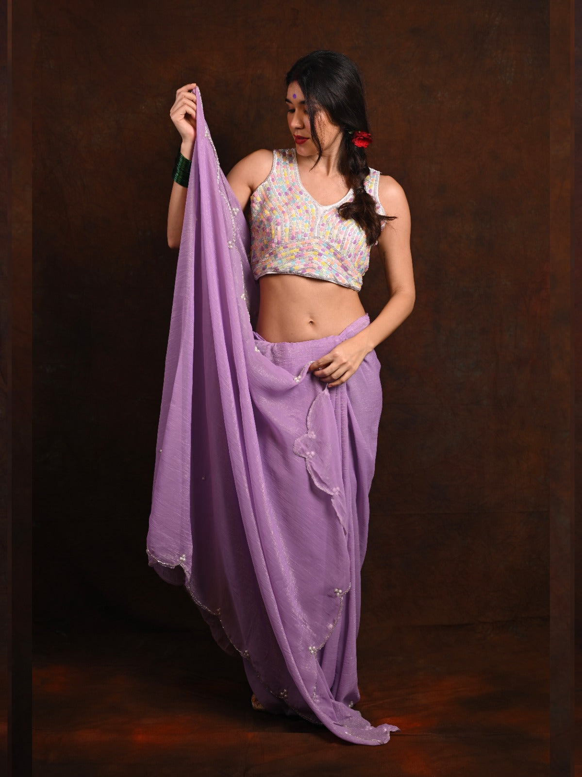 Saree Fabric: Crunchi crush fabric with pearl and bead handwork