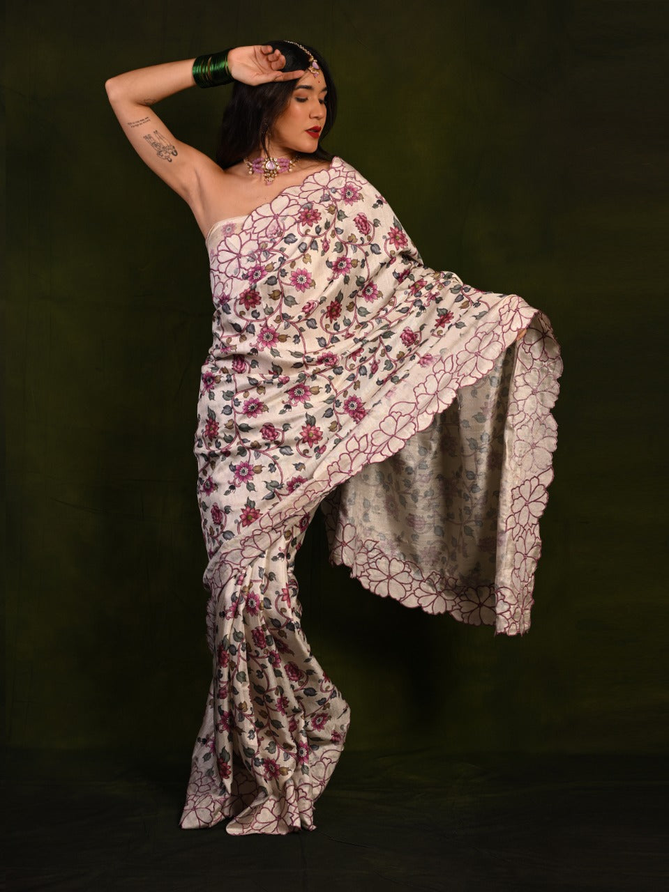 - Design: Digital prints with embroidered cutwork