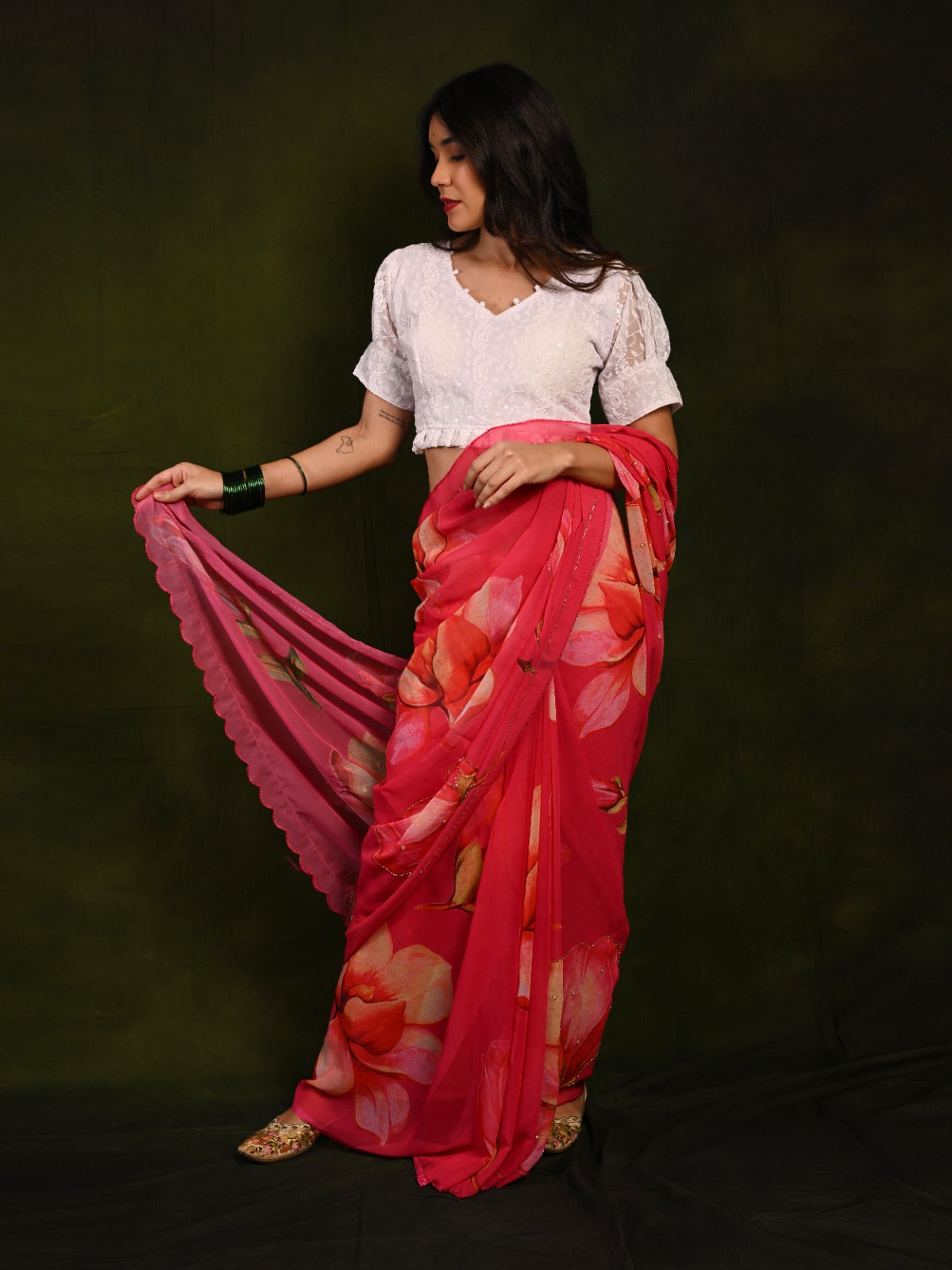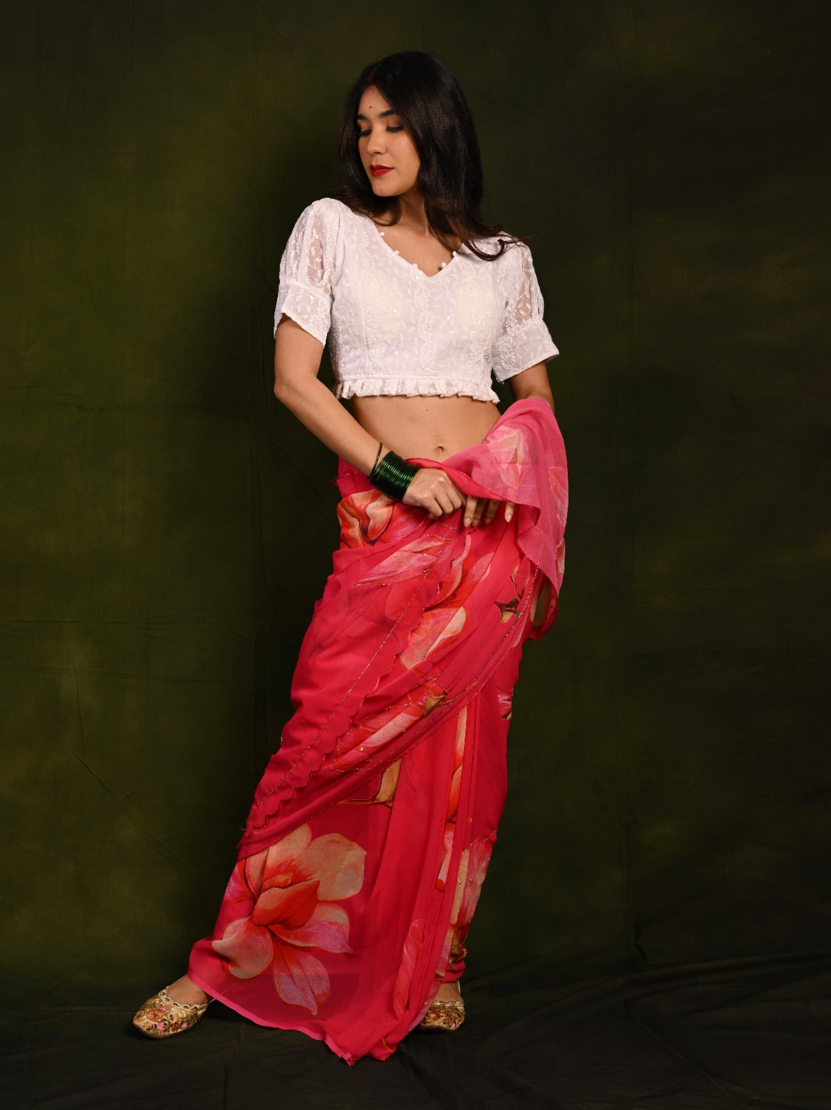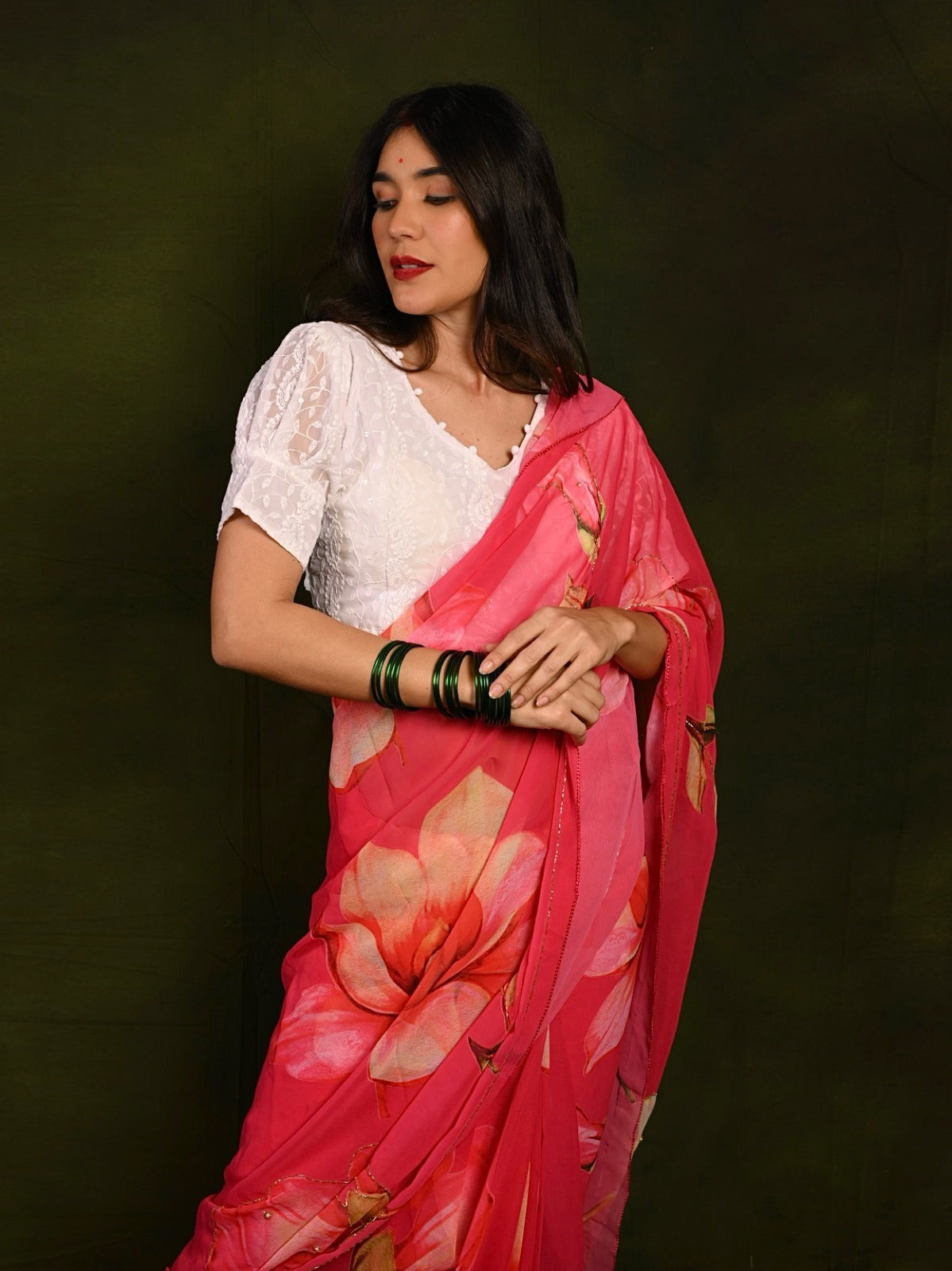 - Saree Fabric: Soft and flowy Georgette with stunning digital print for a contemporary look.