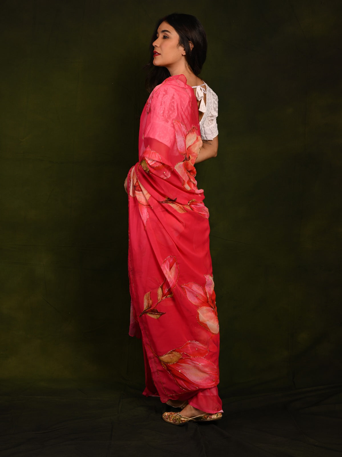 Georgette Digital Printed Saree with Handwork and Art Silk Embroidered Blouse S2012