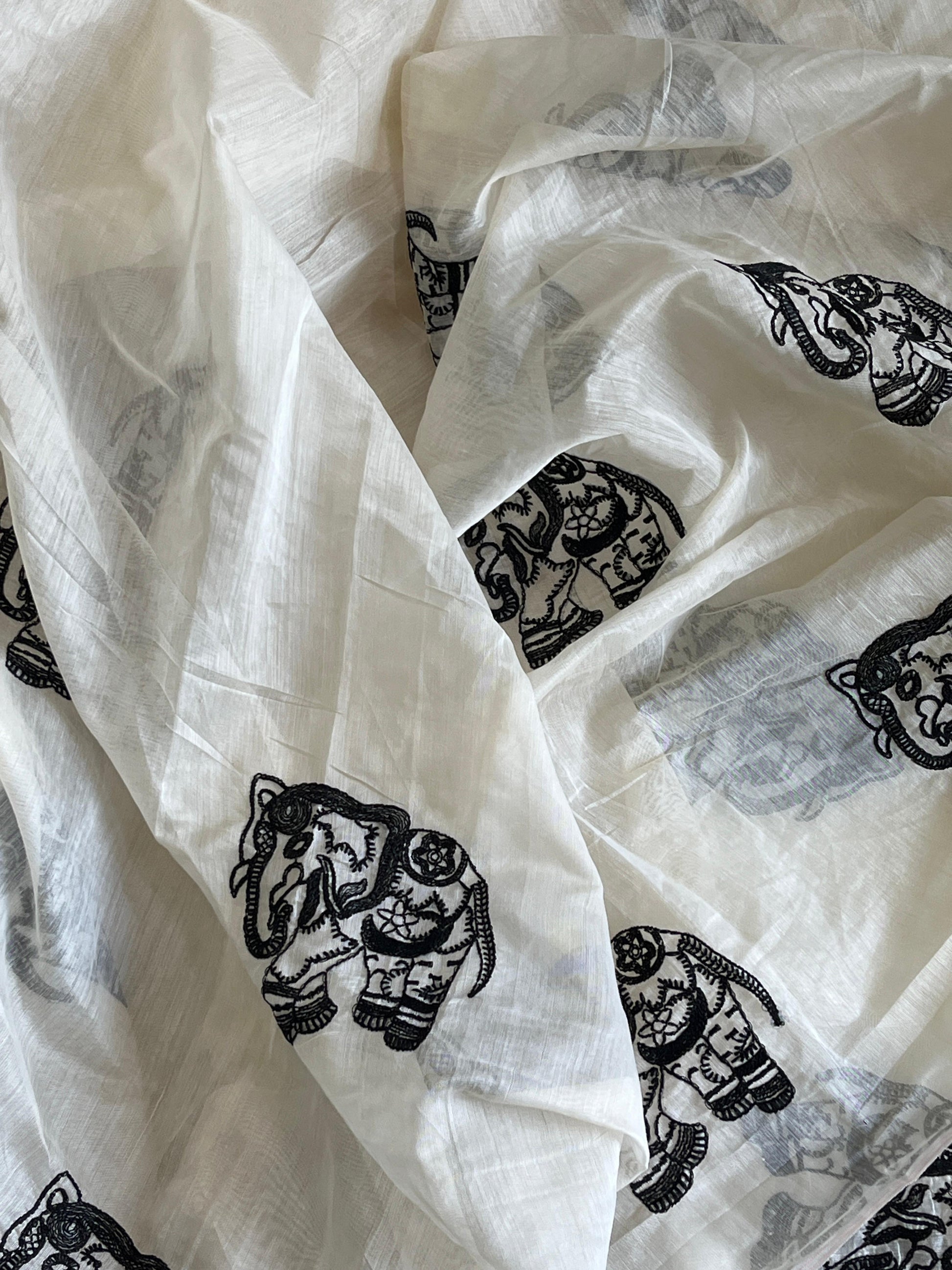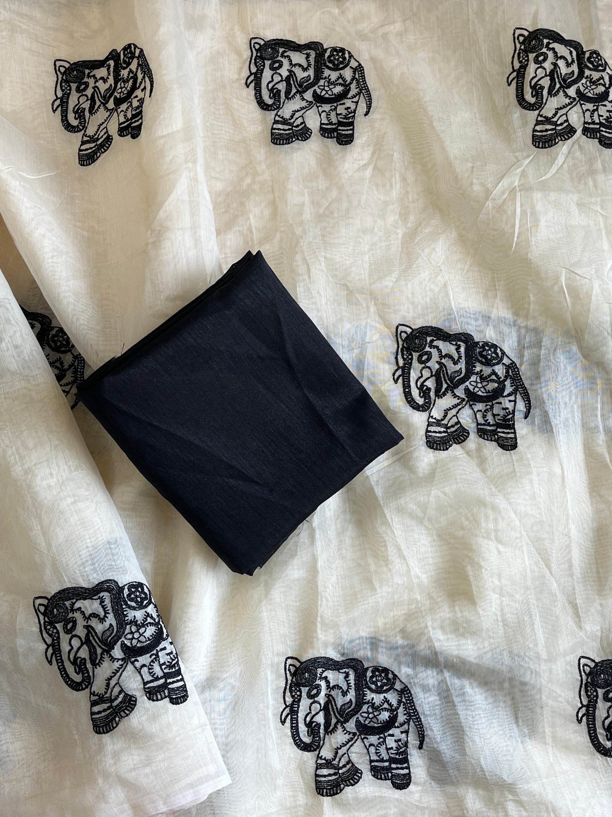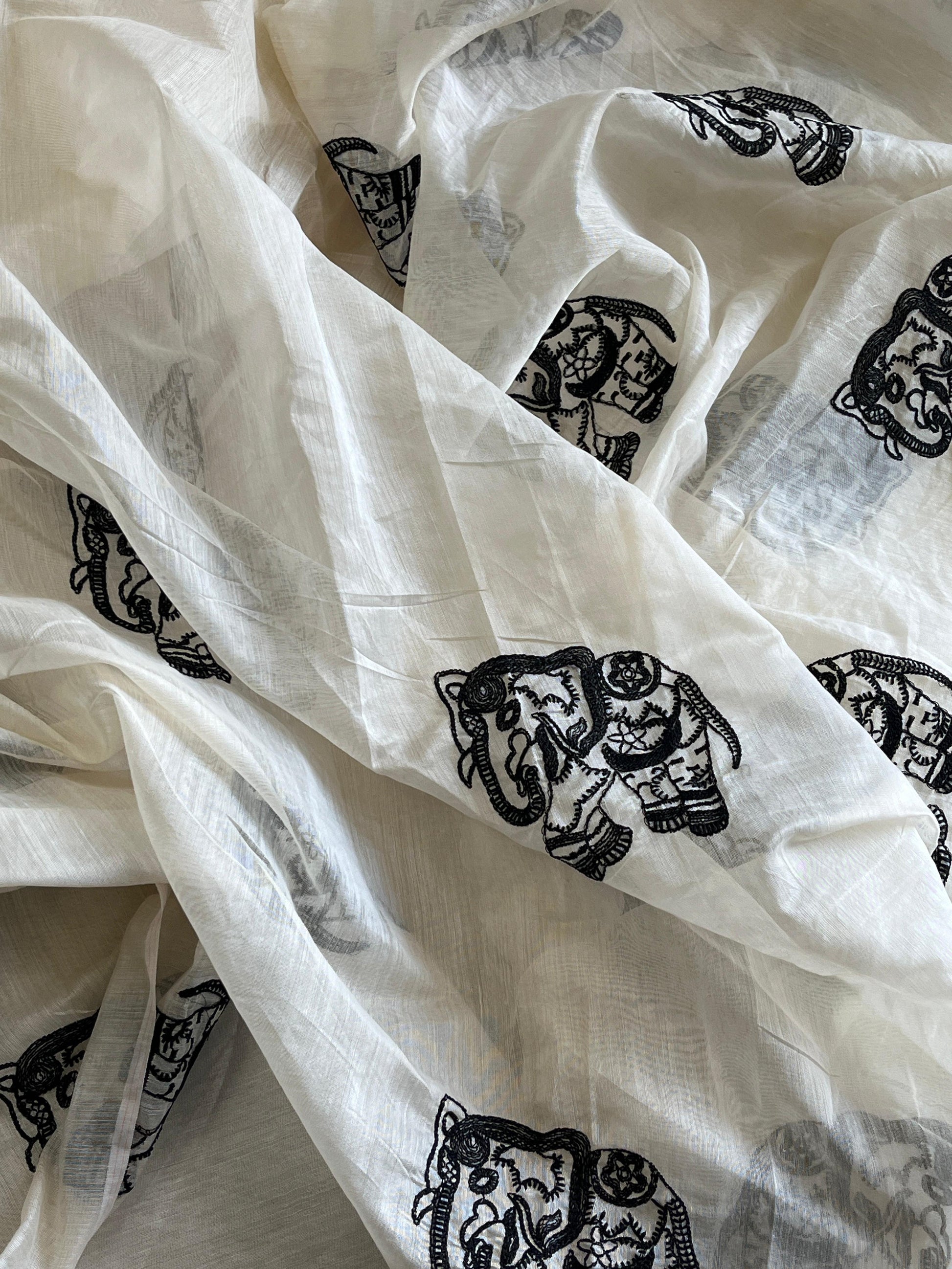 Premium Chanderi Saree with All-Over Elephant Embroidery S2352