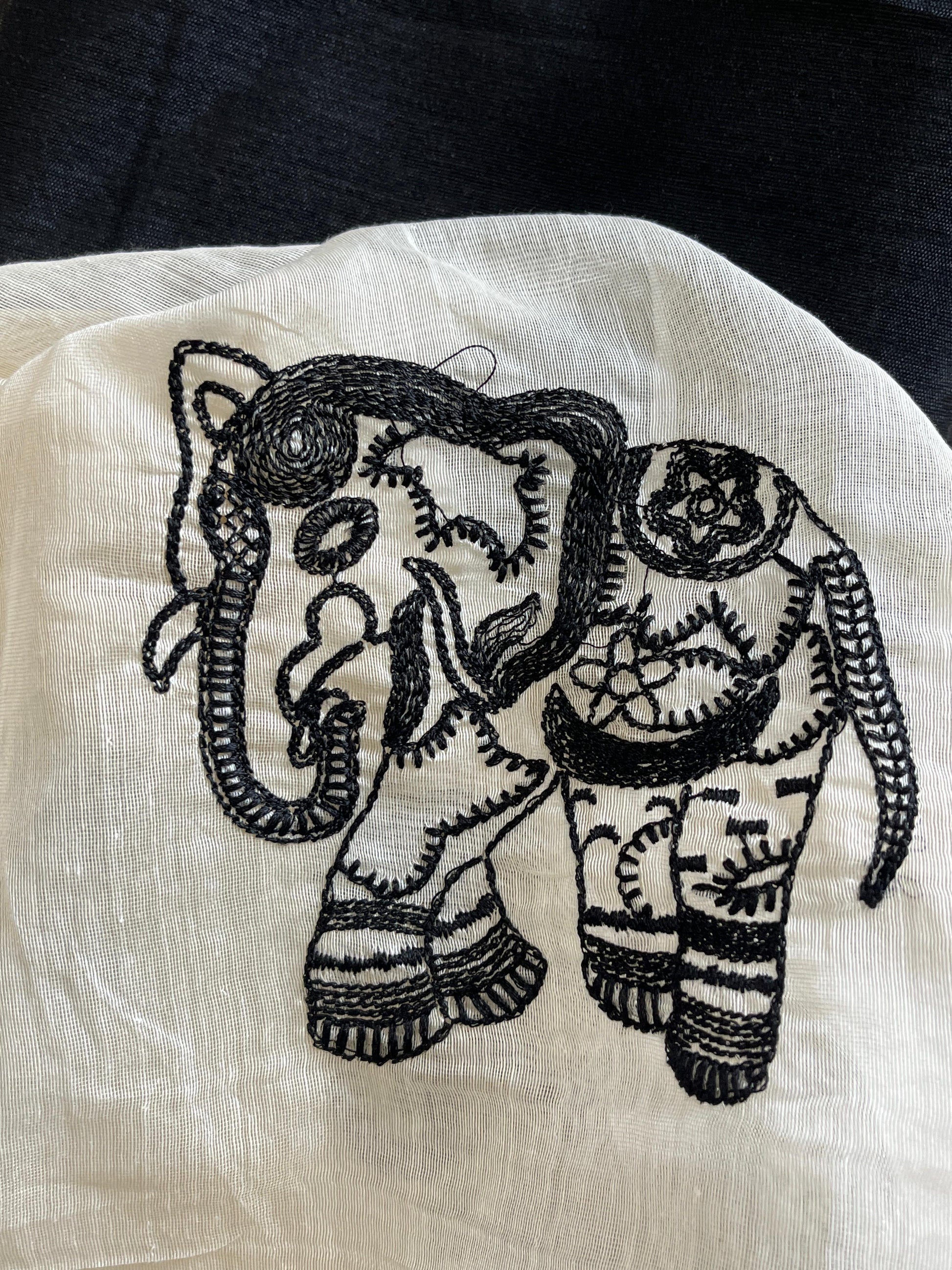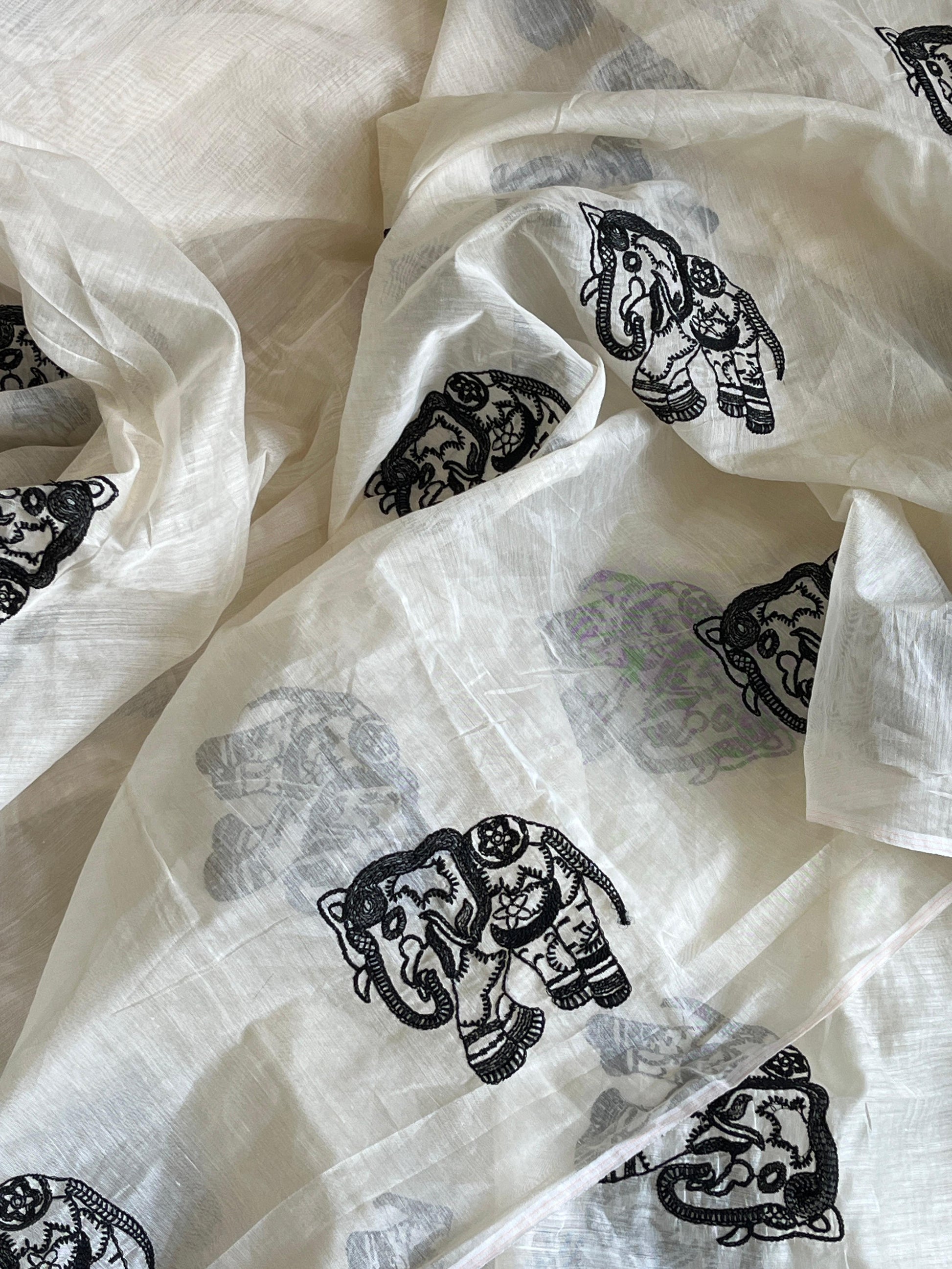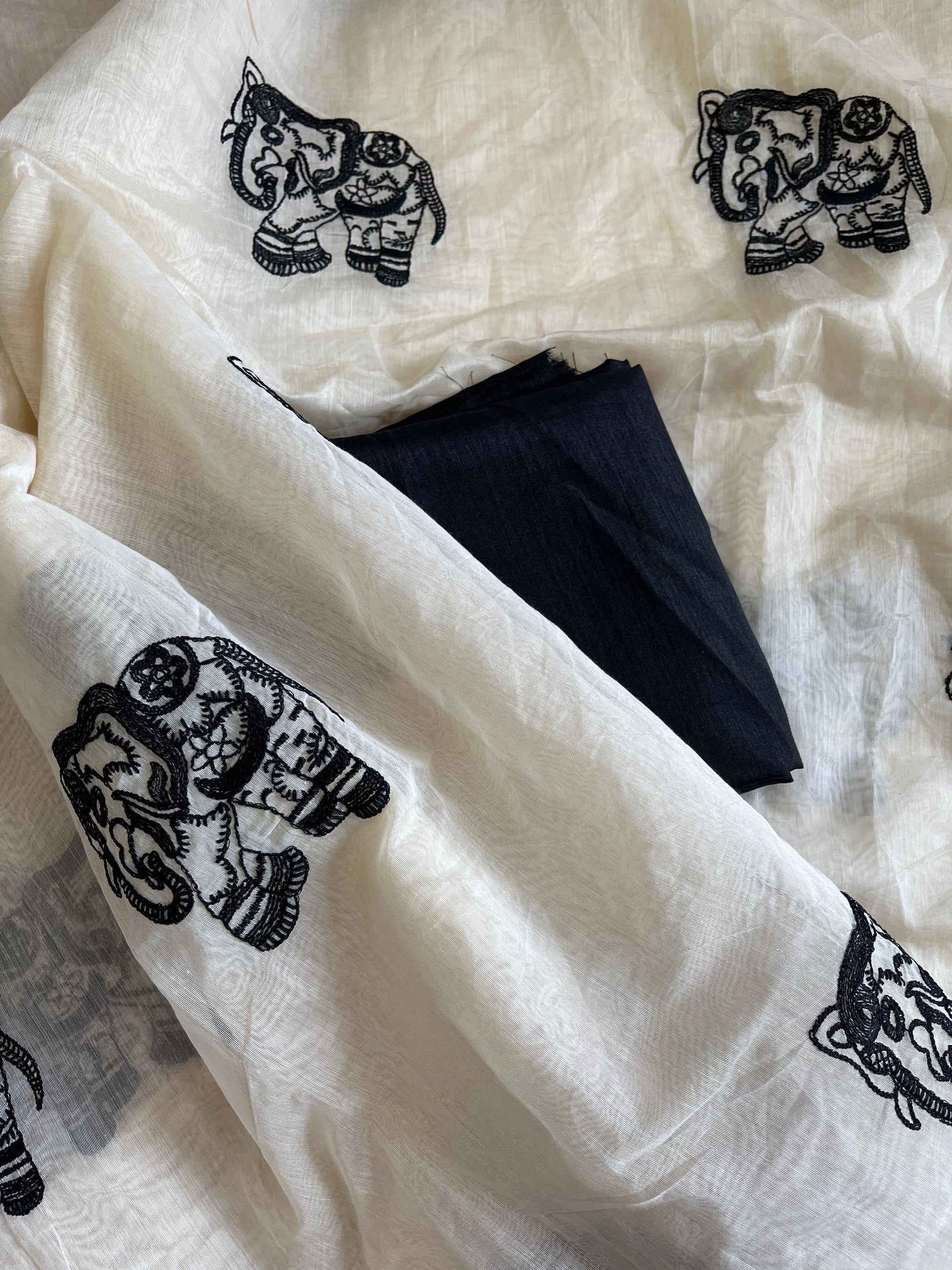Premium Chanderi Saree with All-Over Elephant Embroidery S2352