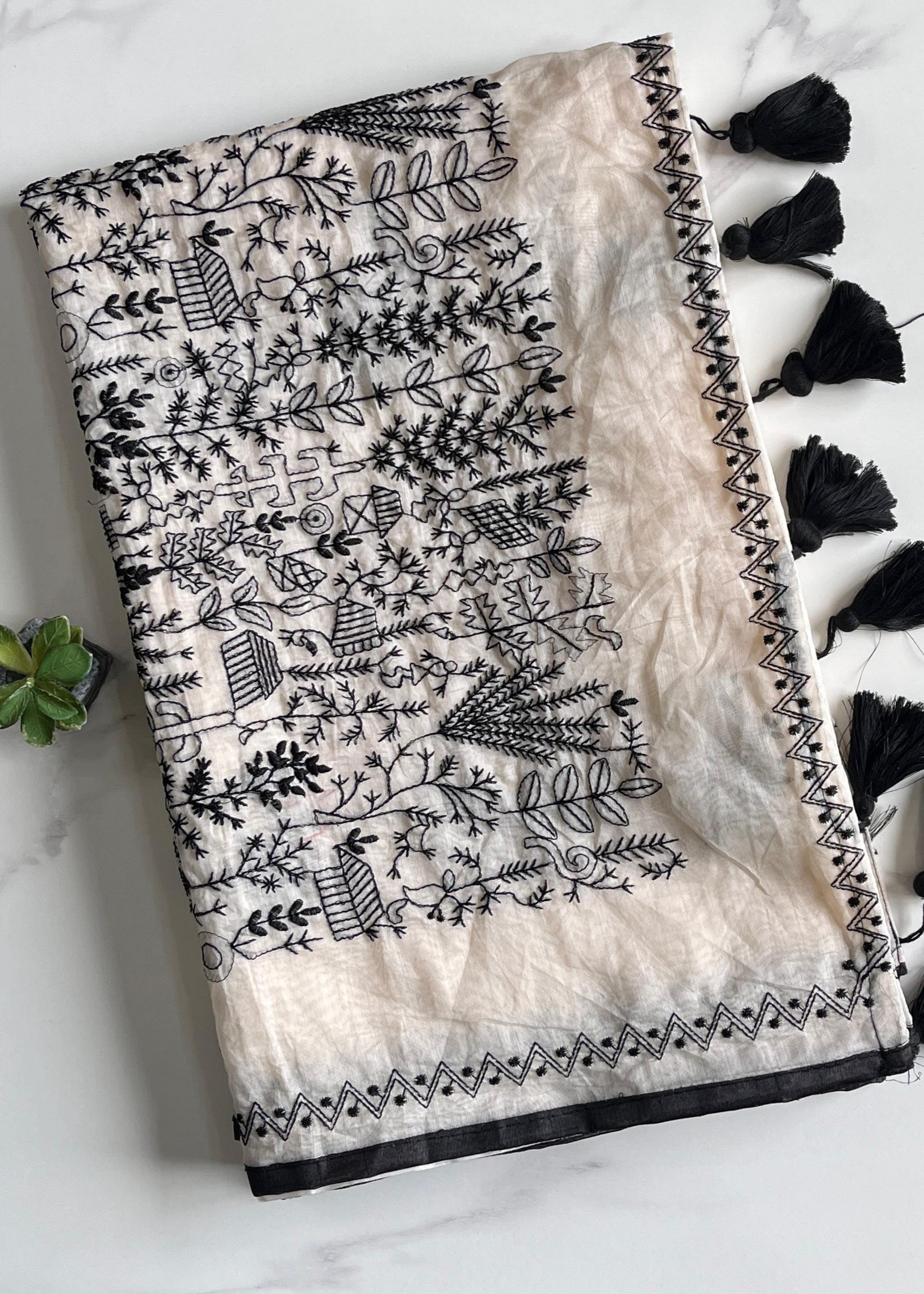 Premium Chanderi Saree with Elegant Embroidery Buttas & Cotton Tassel Pallu S2516