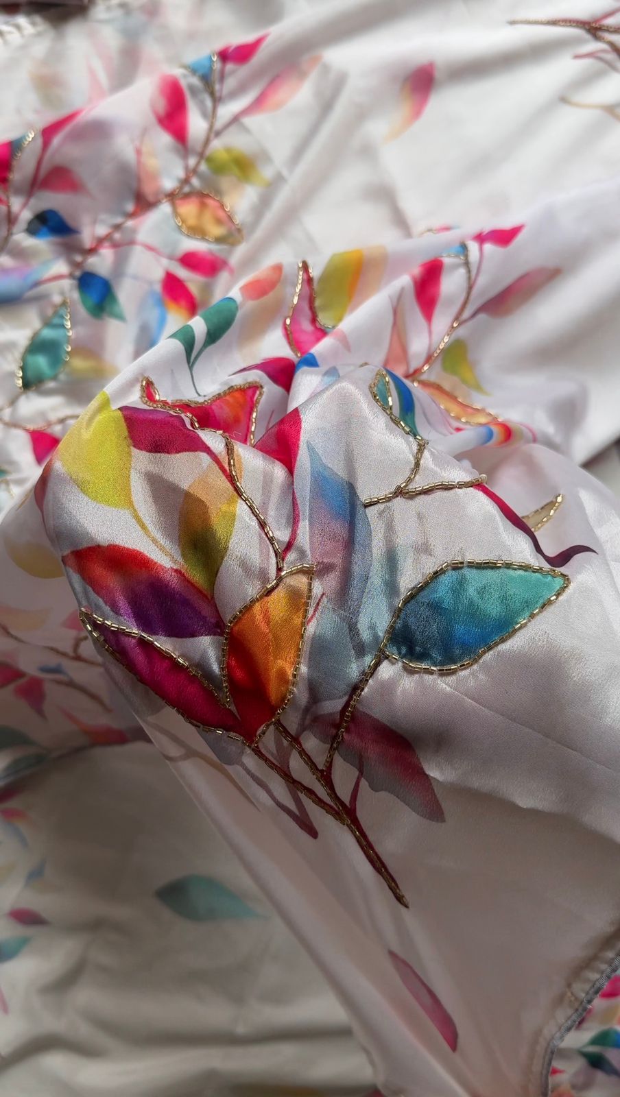 Pure Crepe Satin Silk Saree with Digital Print & Cutdana Handwork S2347