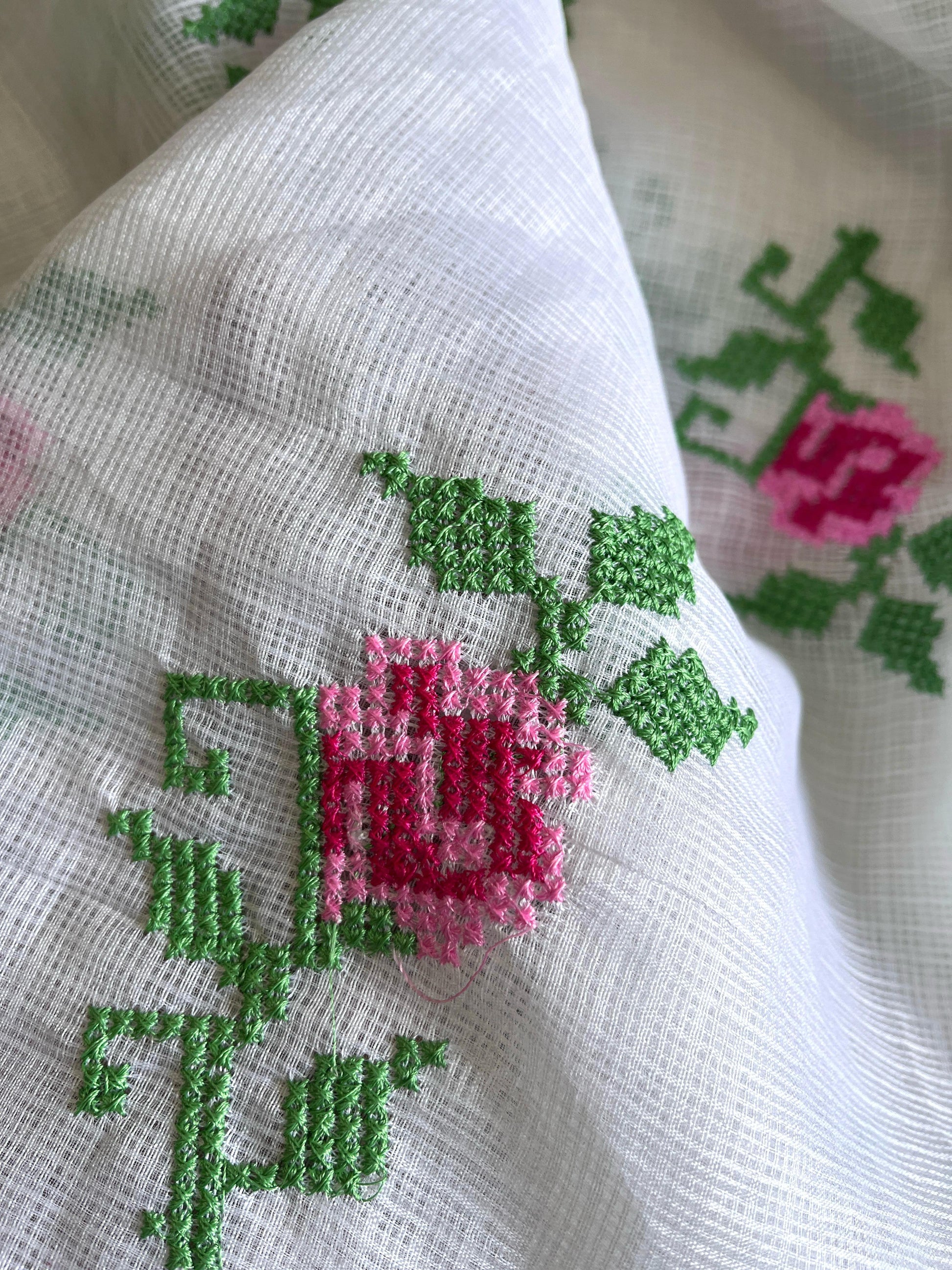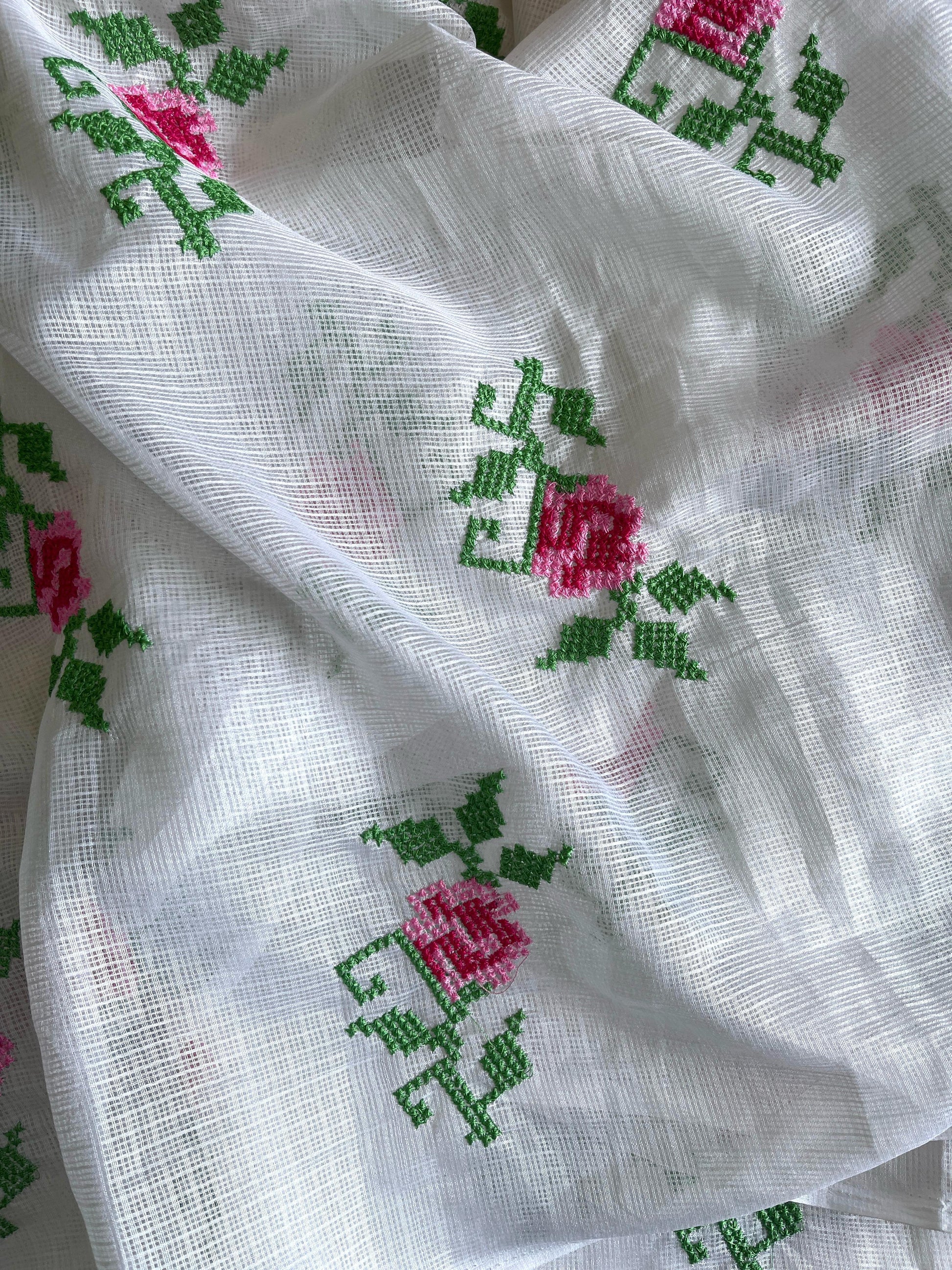 Pure Kota Doriya Cross-Stitch Thread Saree with Printed Blouse VT-KOTA-FLOWER