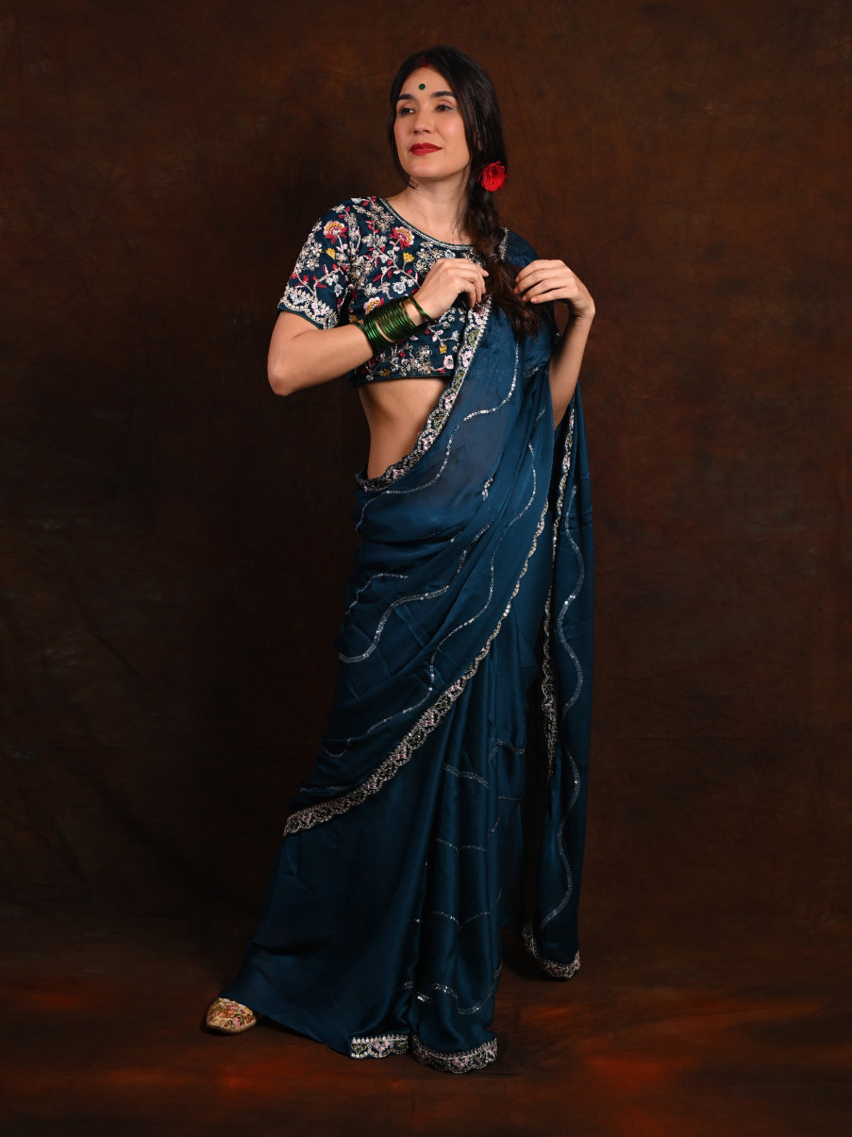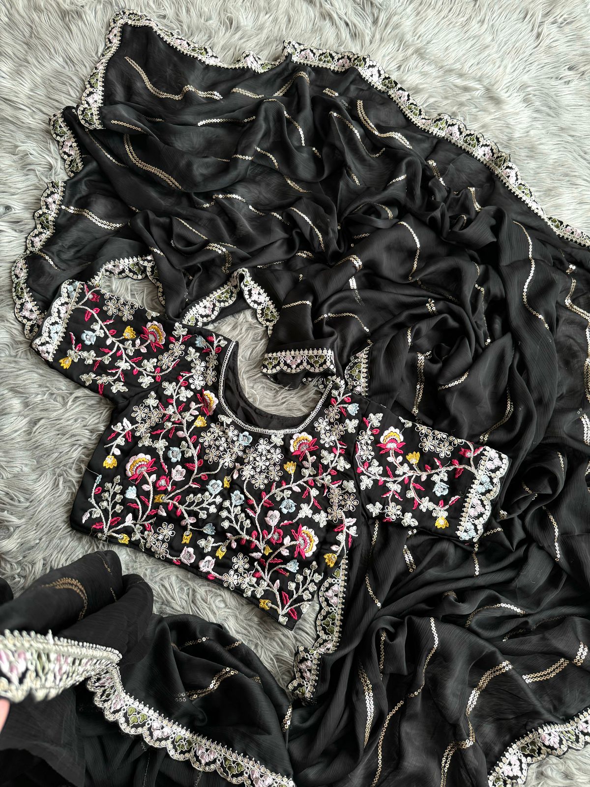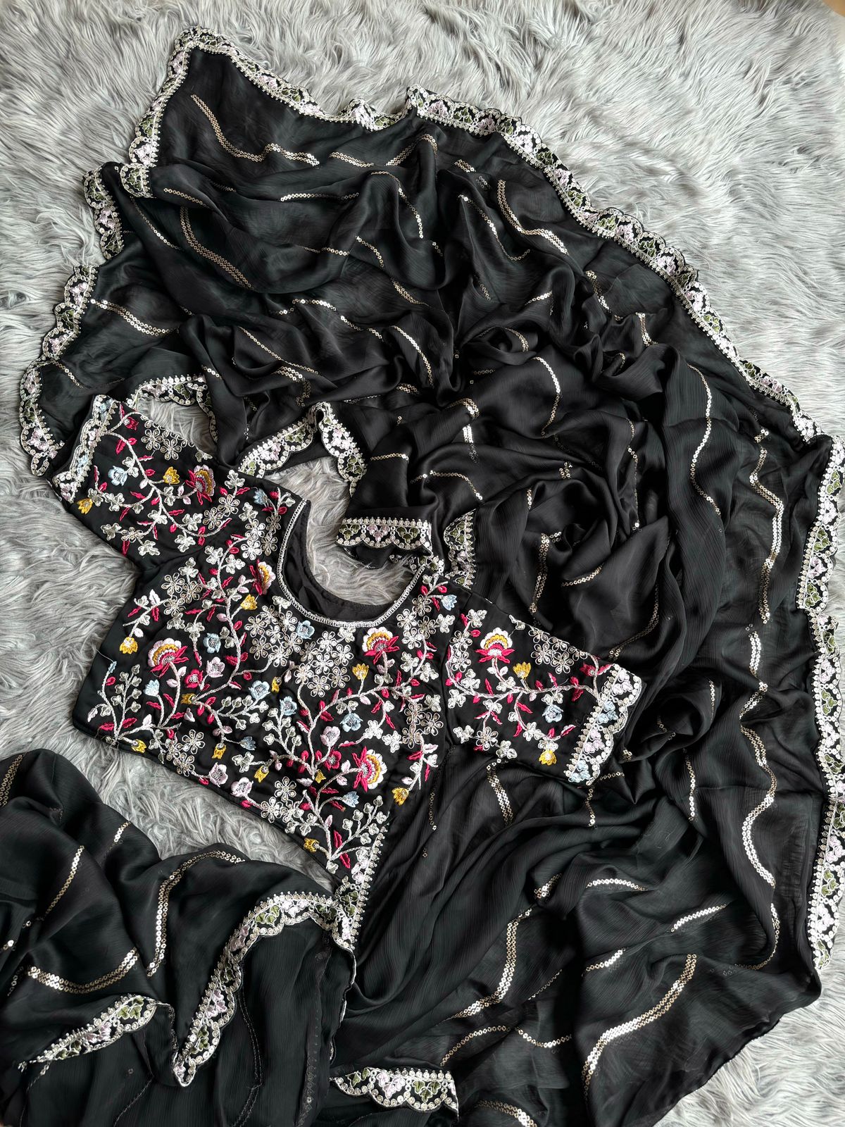 Pure Satin Georgette Designer Saree with Multi Color Sequnce Codding Work Blouse S2013