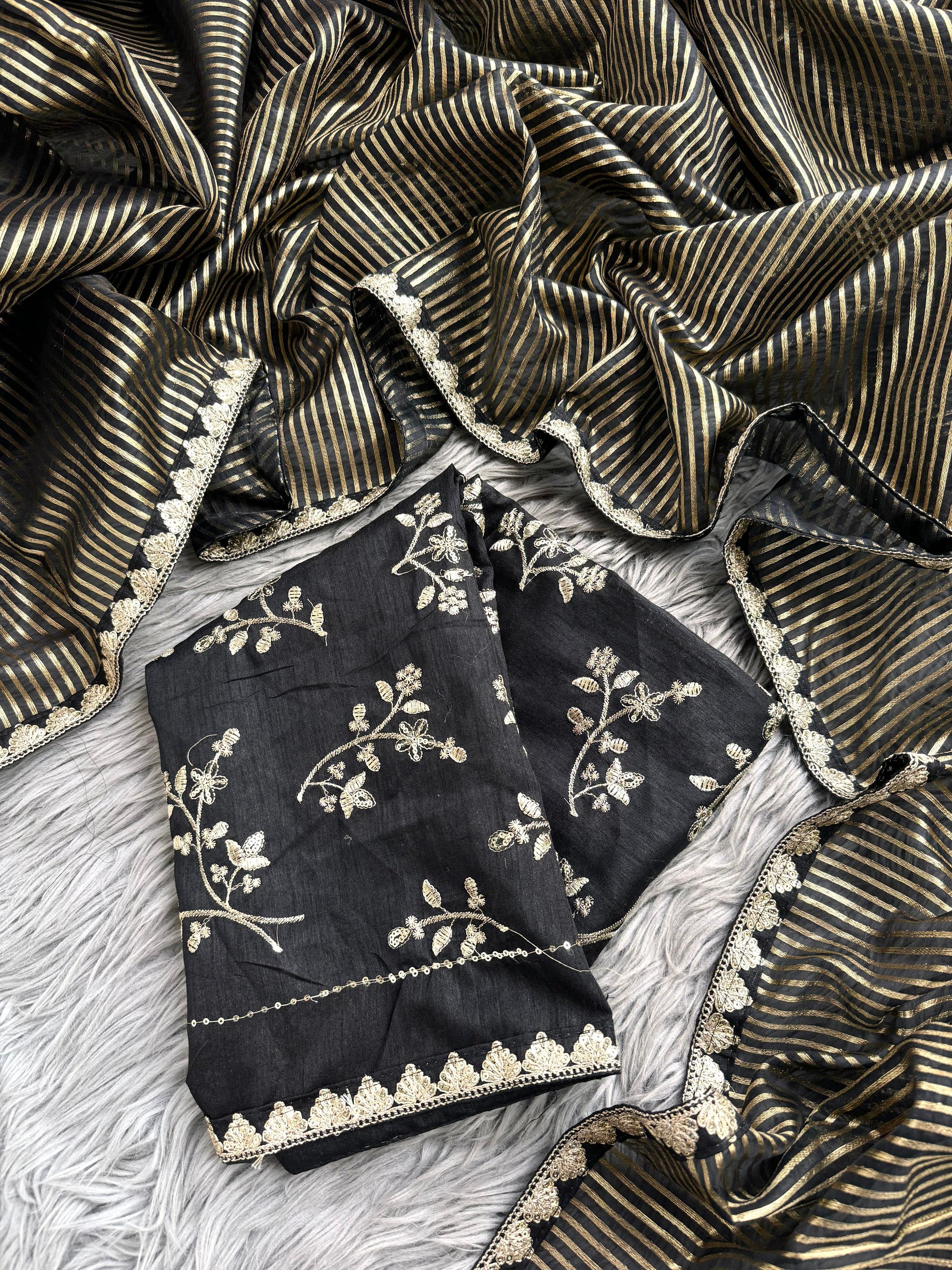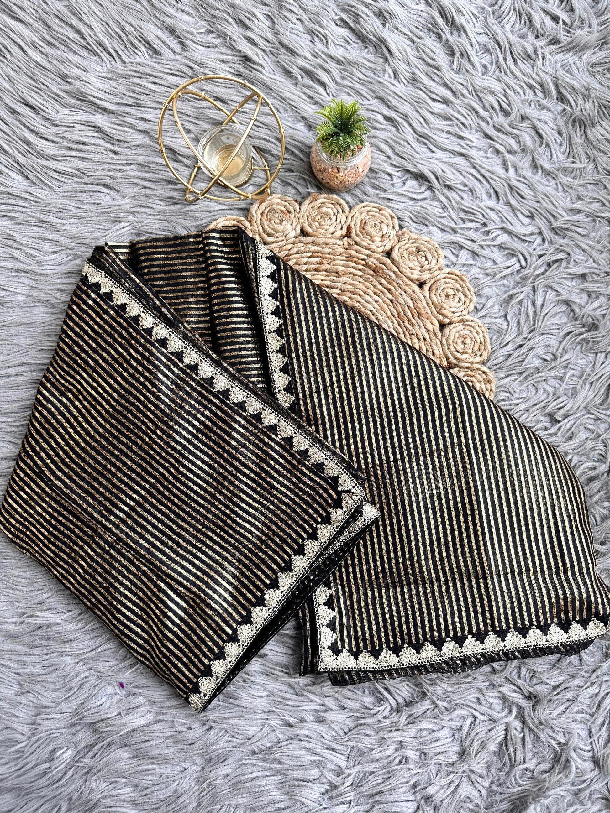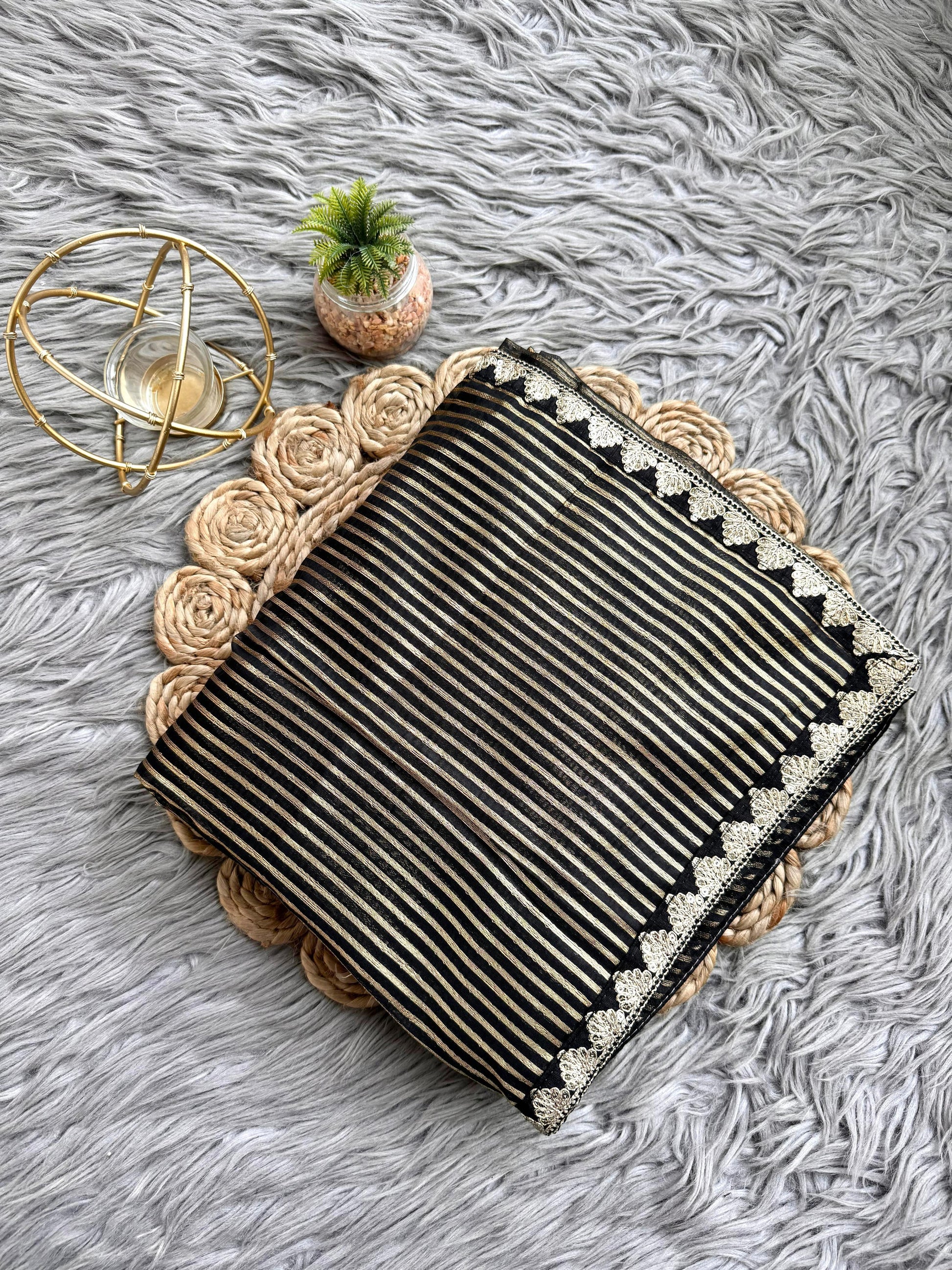 Pure Soft Organza Saree with Gold Zari Weave & Sequin Lace Border VT-1184