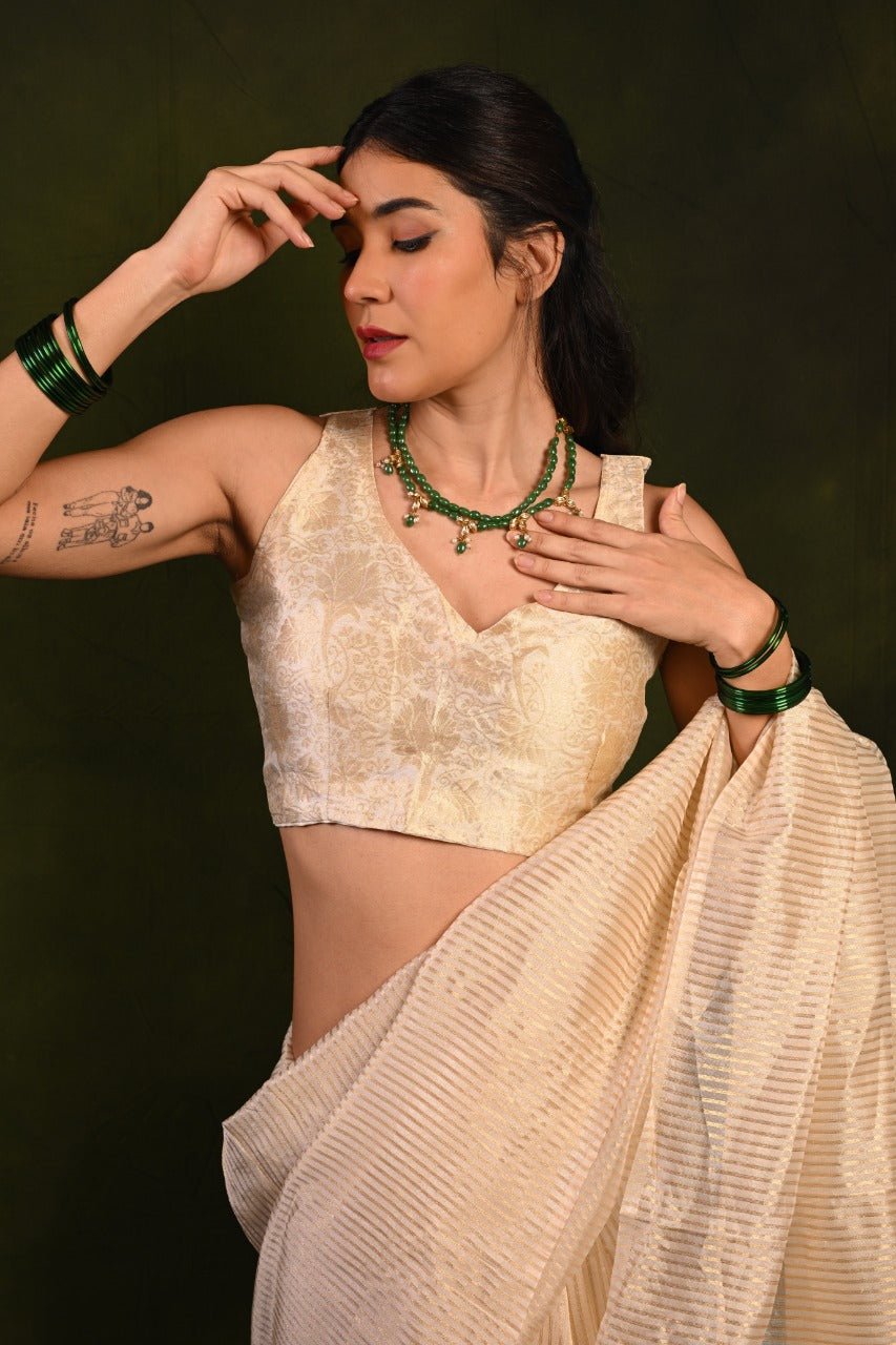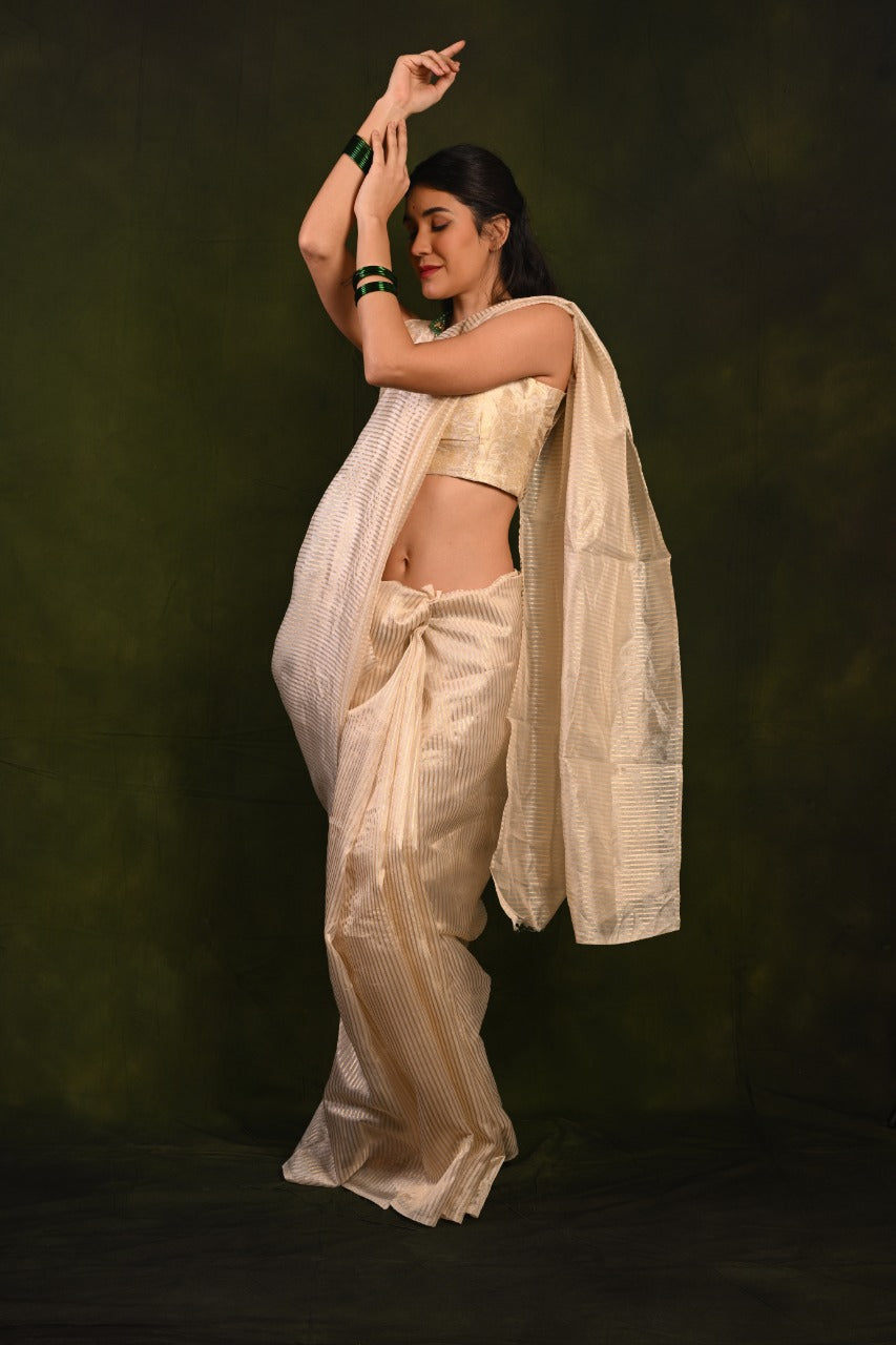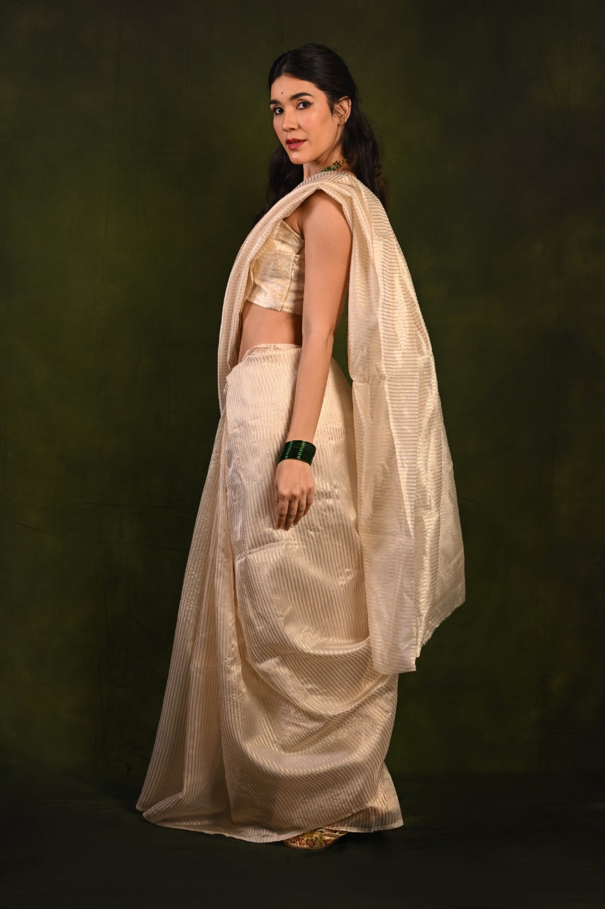 Soft Organza Saree with Golden Zari Stripes and Brocade Jacquard Blouse D896