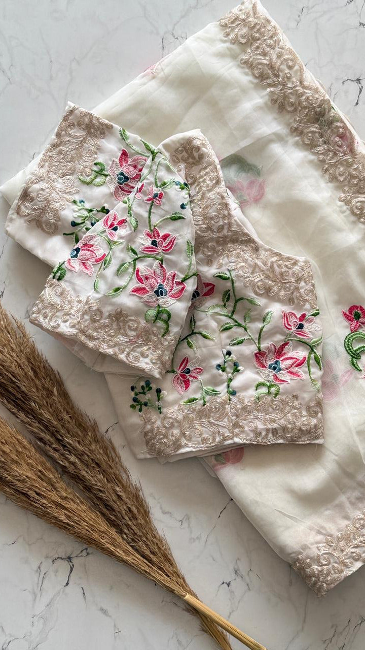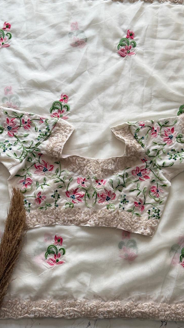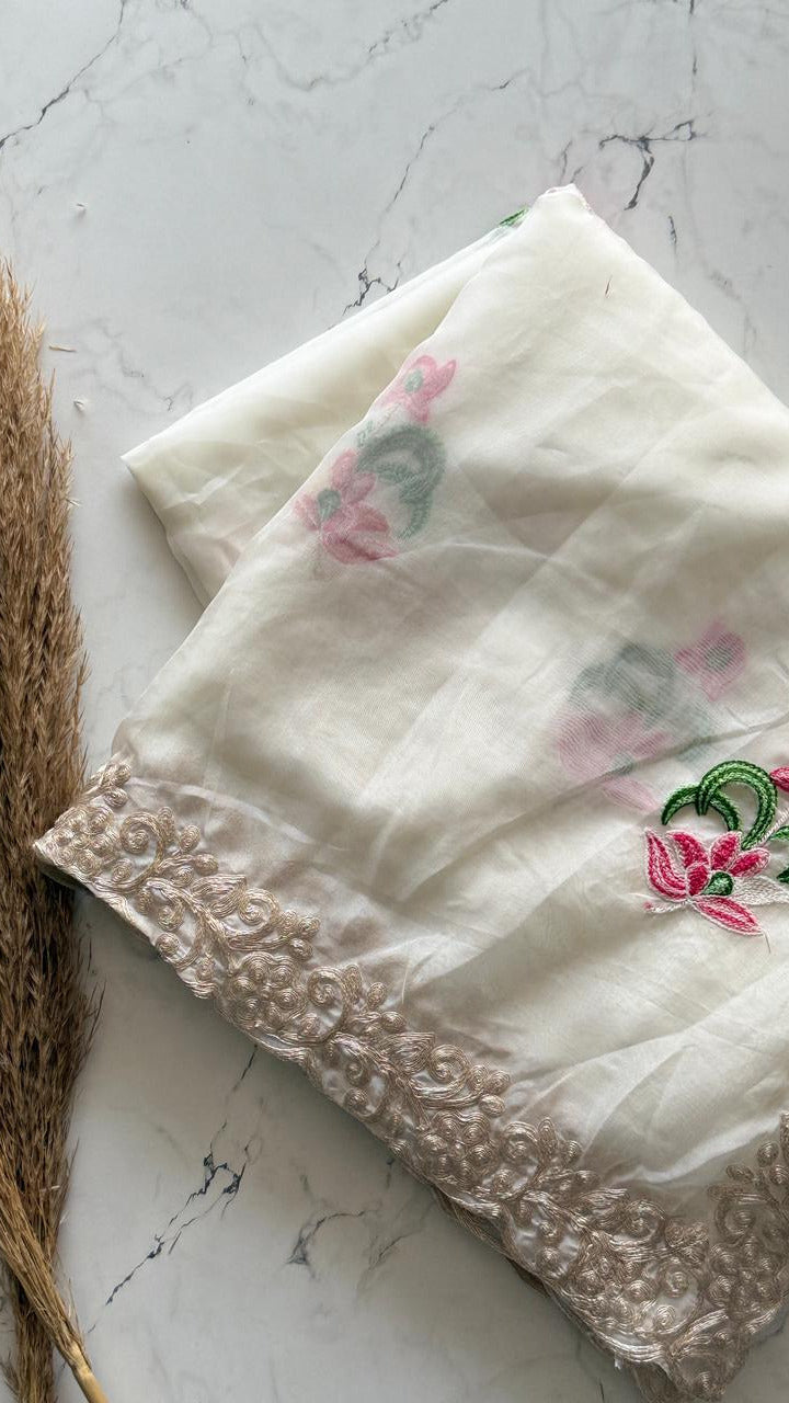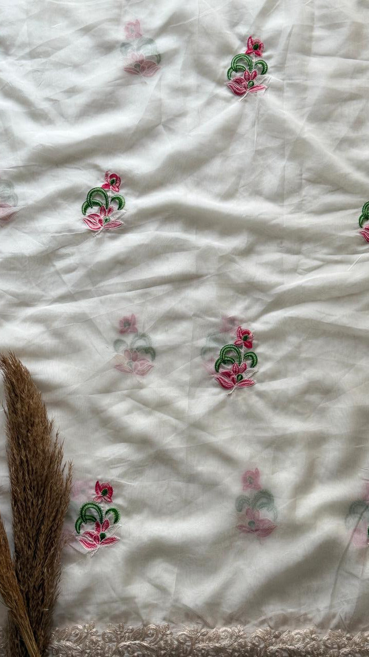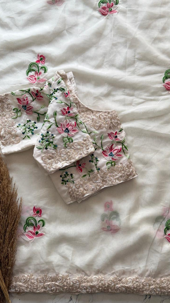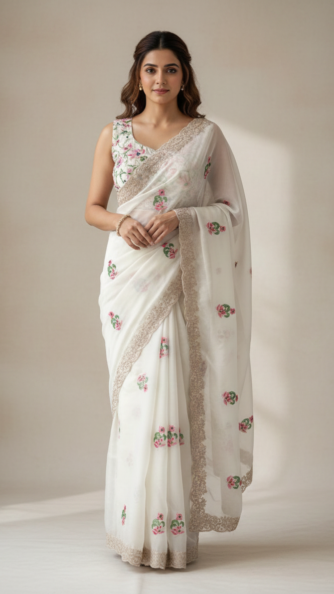 The 'Moonlit Garden' Saree | Exquisite Handwork on Sheer White Fabric SD-1011