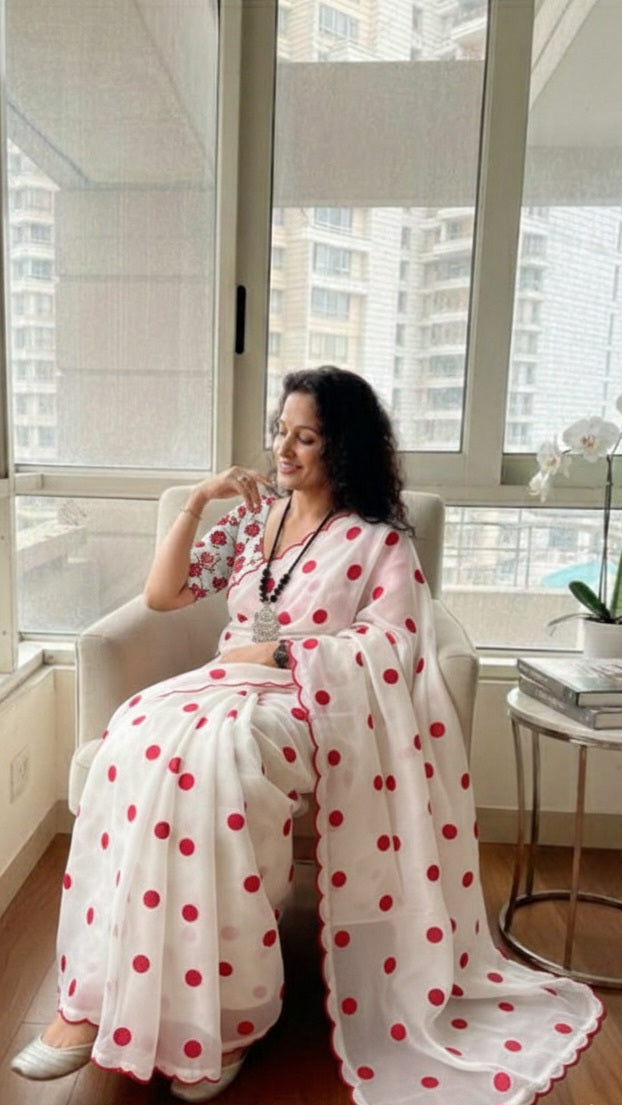 Paired with a matching designer blouse, this saree offers a complete and polished look. Easy to style and maintain, it is a perfect choice for office wear, family gatherings, festive moments, or evening outings.