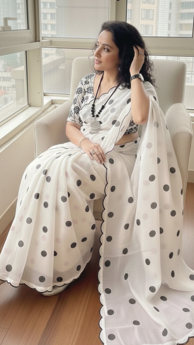 Elevate your everyday style with this elegant saree designed for effortless grace and comfort. Crafted from soft, lightweight fabric, it drapes beautifully and feels comfortable throughout the day. The subtle pattern and refined border detailing add a modern yet timeless charm, making it suitable for both casual and special occasions.