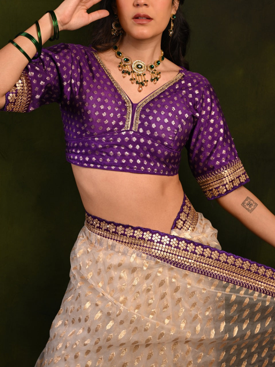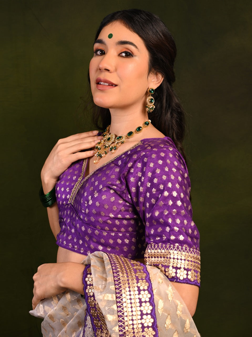 - Blouse Fabric : Banarsi silk with embroidery (UNSTICHED)