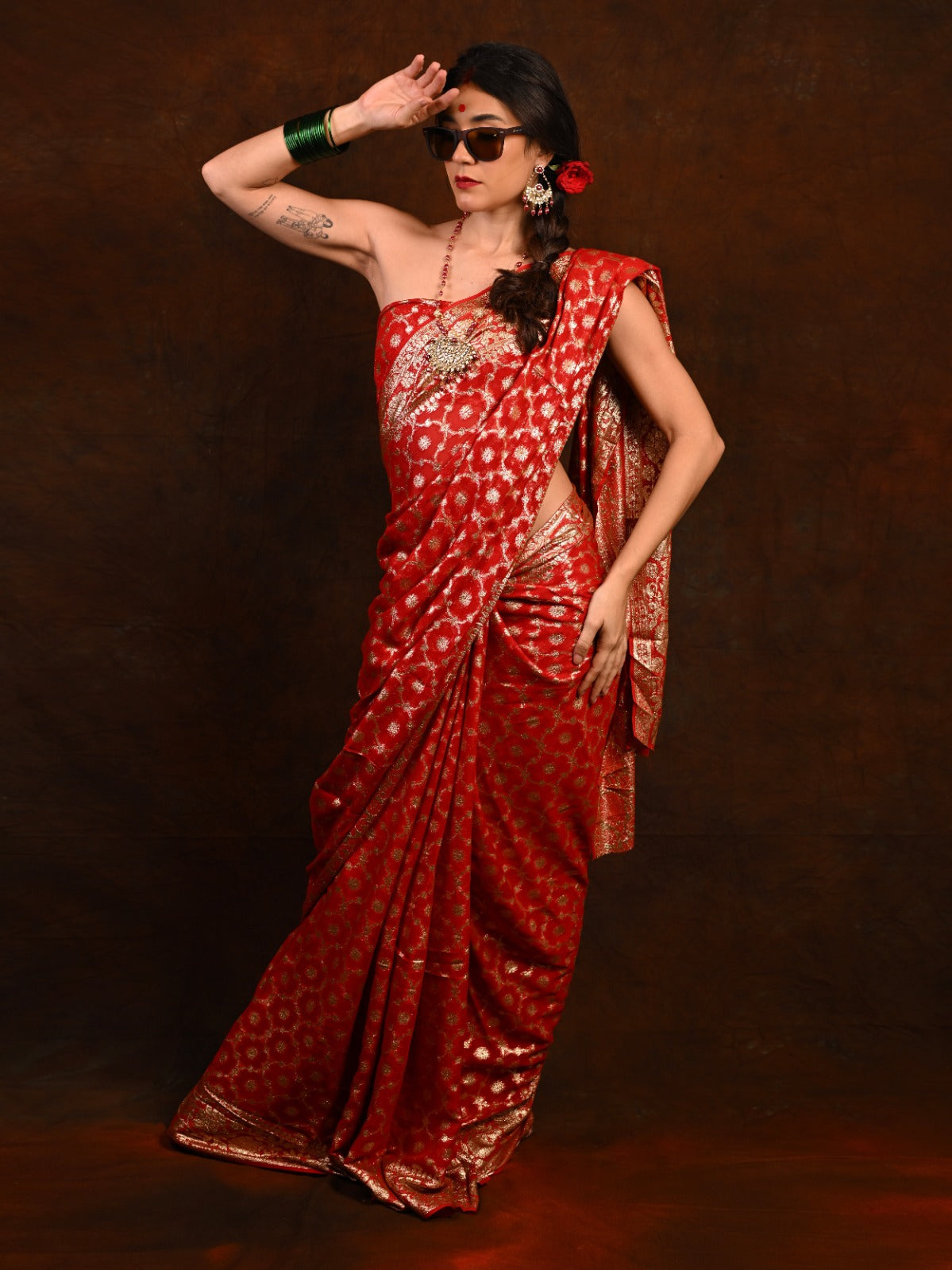 The saree is paired with a viscose unstitched blouse, providing the flexibility to customize the blouse according to your preferred fit and style. Whether you choose a traditional or modern blouse design, this combination allows you to create a personalized look that suits your taste.
